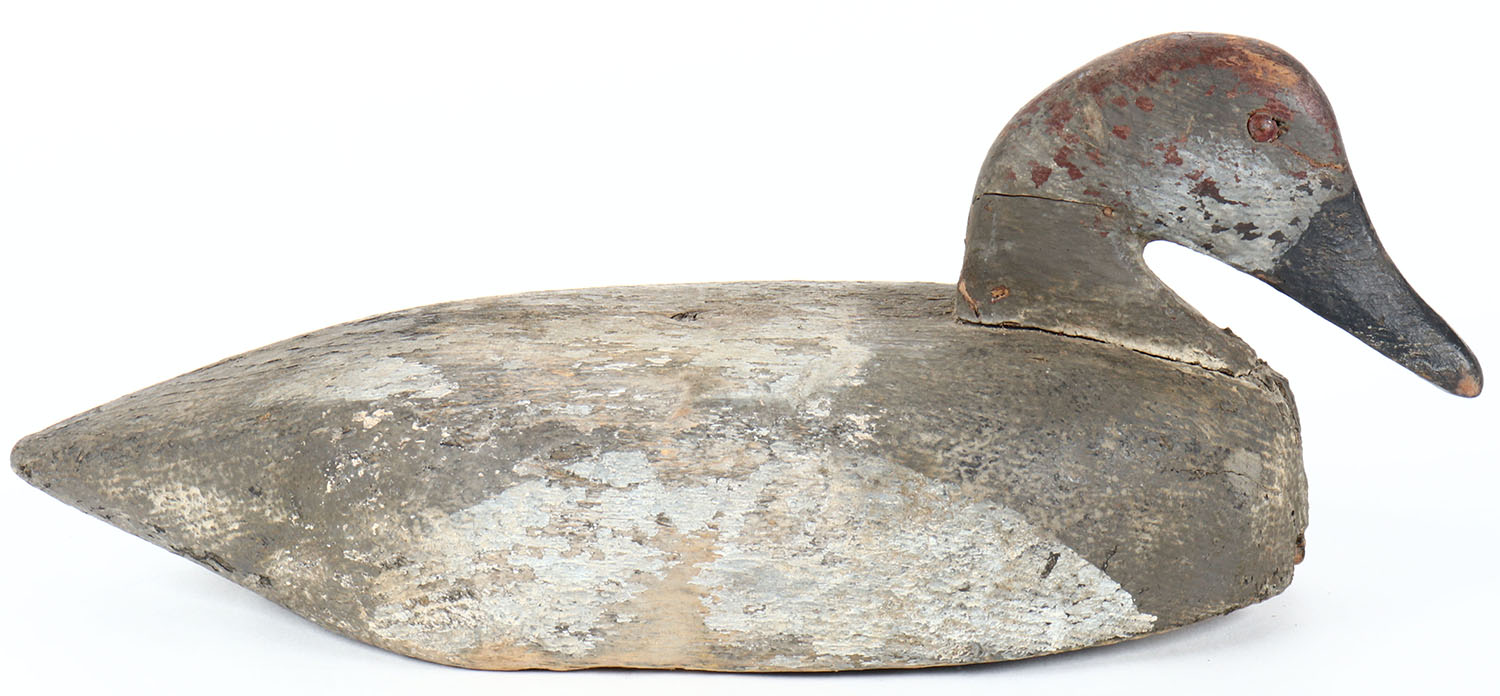 Canvasback Hen by unknown maker, glass eyes, hollowed out body, old hunter repaint with typical wear. Grade: Very Good - Value: 20 to 40