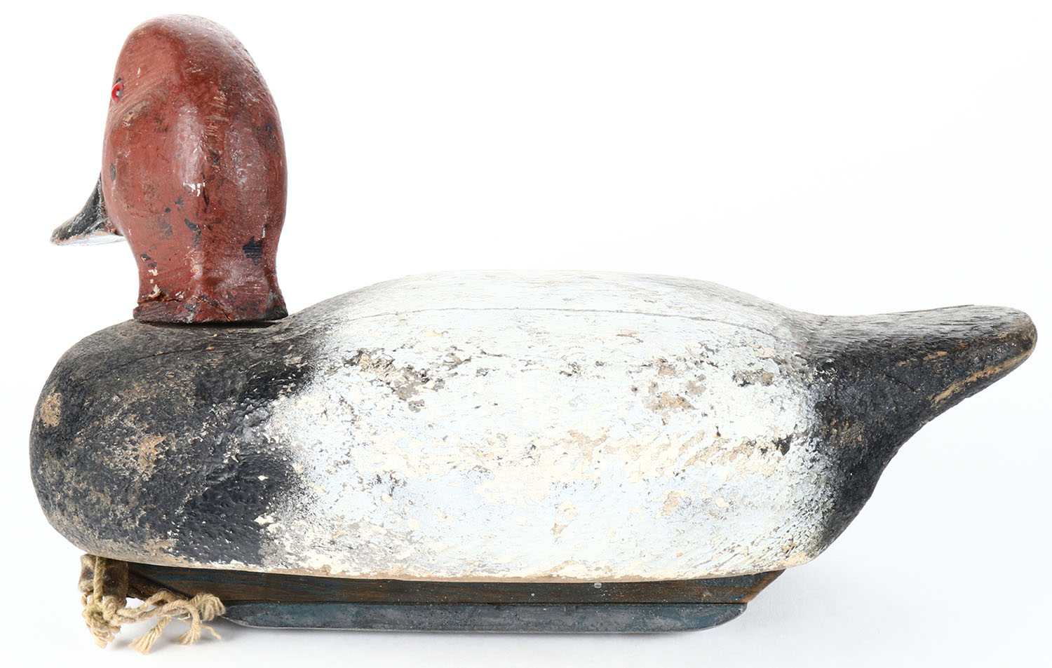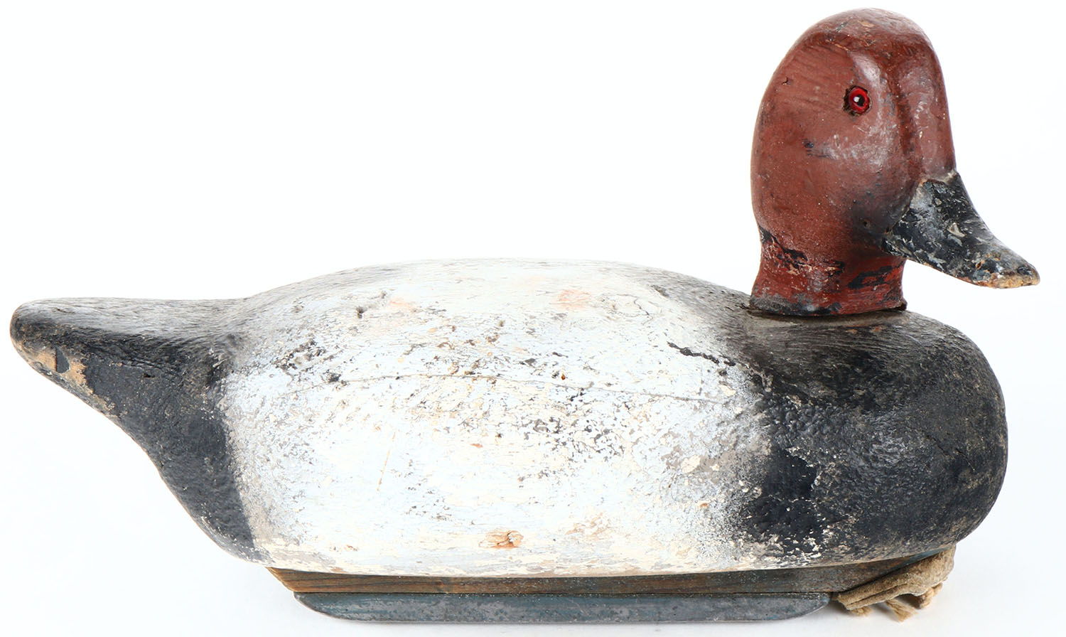 Redhead Drake by unknown maker, glass eyes, hollow wood, old hunter repaint, has age cracks on back, head is slightly loose. Grade: Very Good + - Value: 10 to 20
