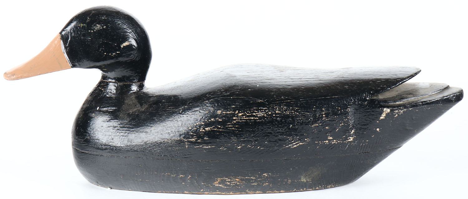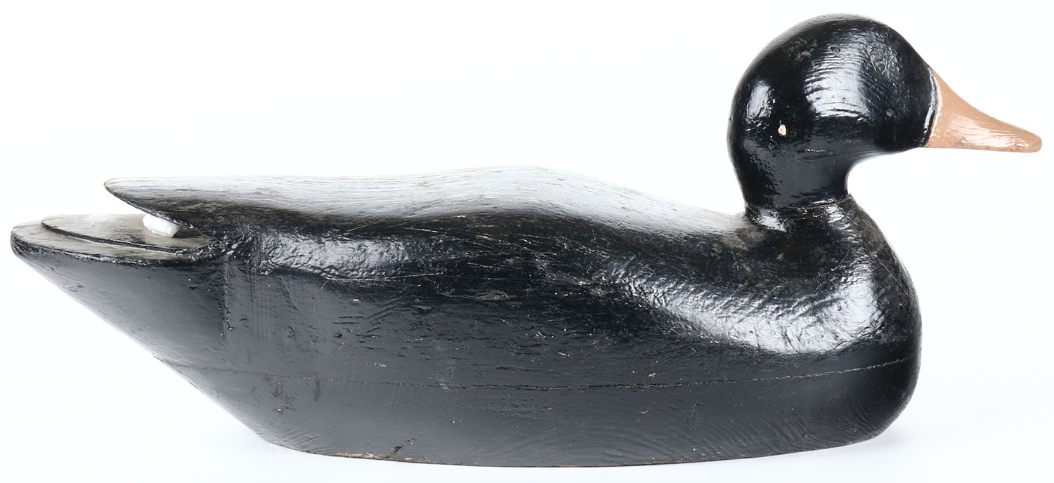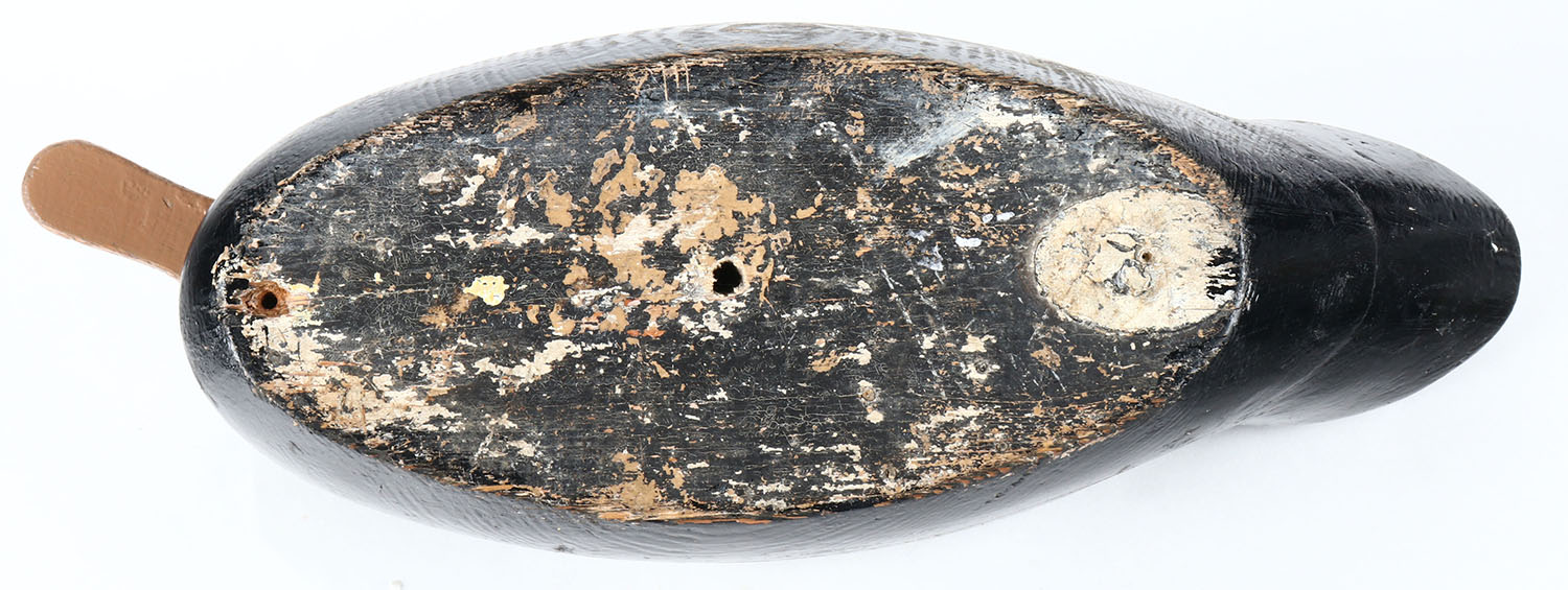 Black Duck by unknown maker, painted eyes, hollow wood, old hunter repaint, structurally excellent. Grade: Excellent - Value: 20 to 50