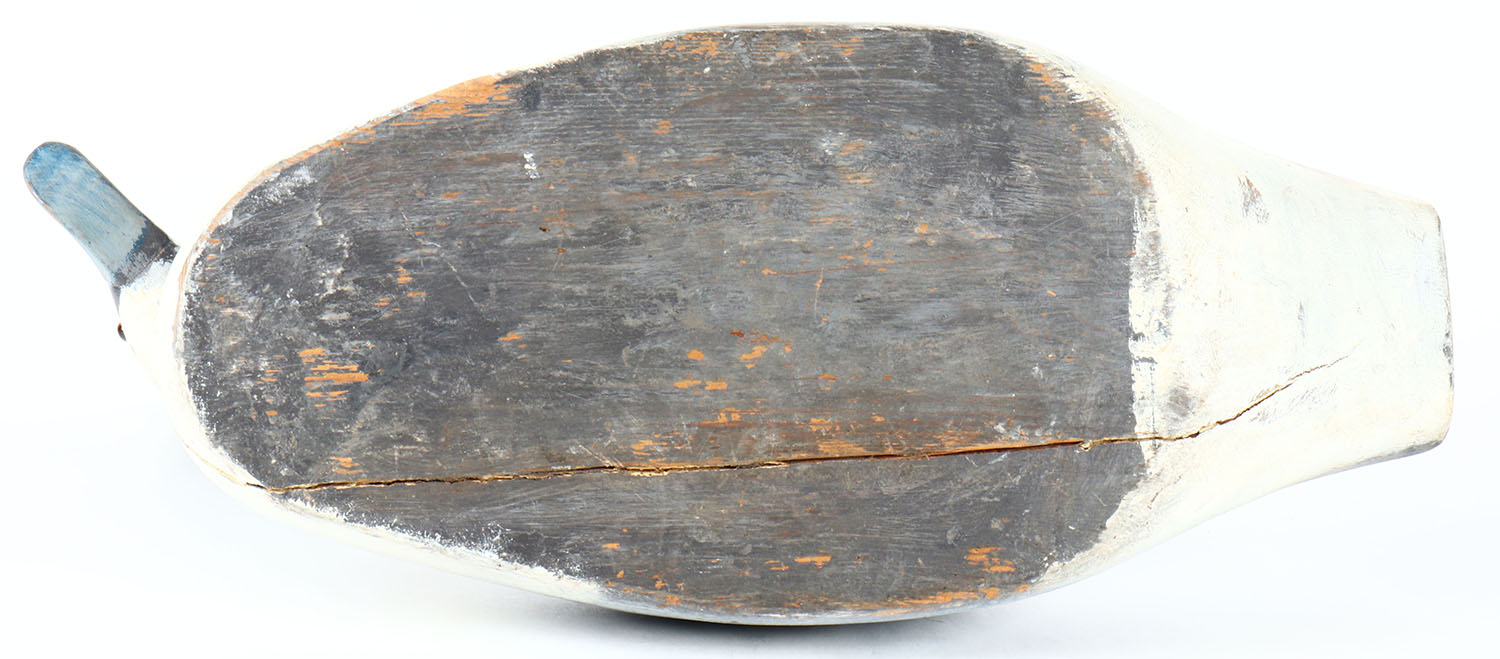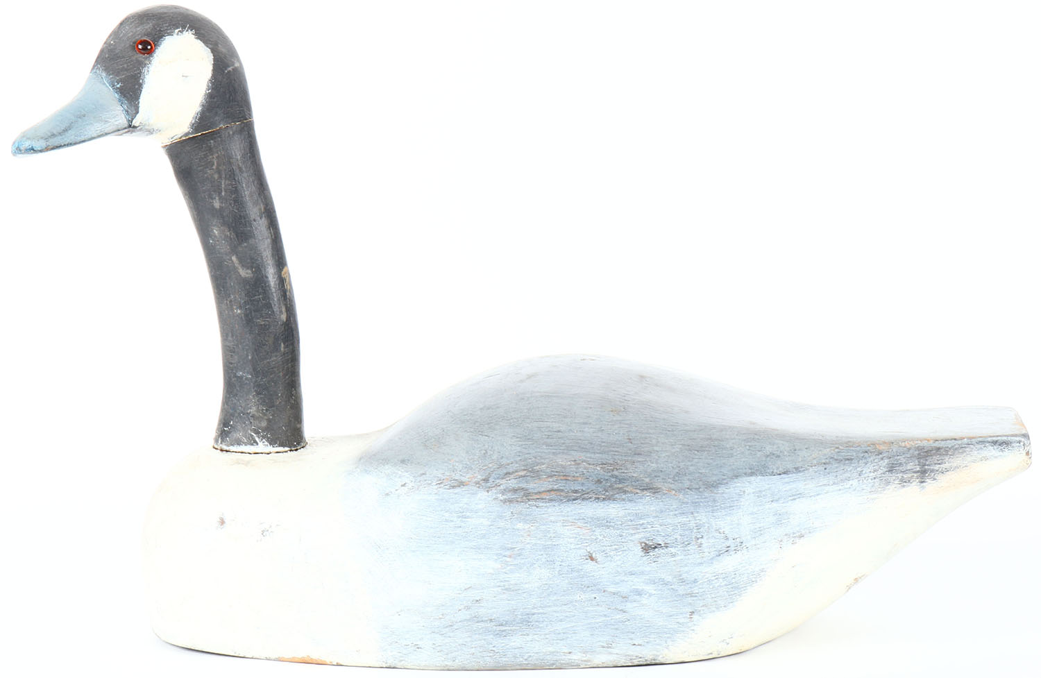 Canada Goose by unknown maker, glass eyes, solid wood, old hunter repaint, has age cracks on bottom and under neck. Grade: Very Good + - Value: 20 to 40