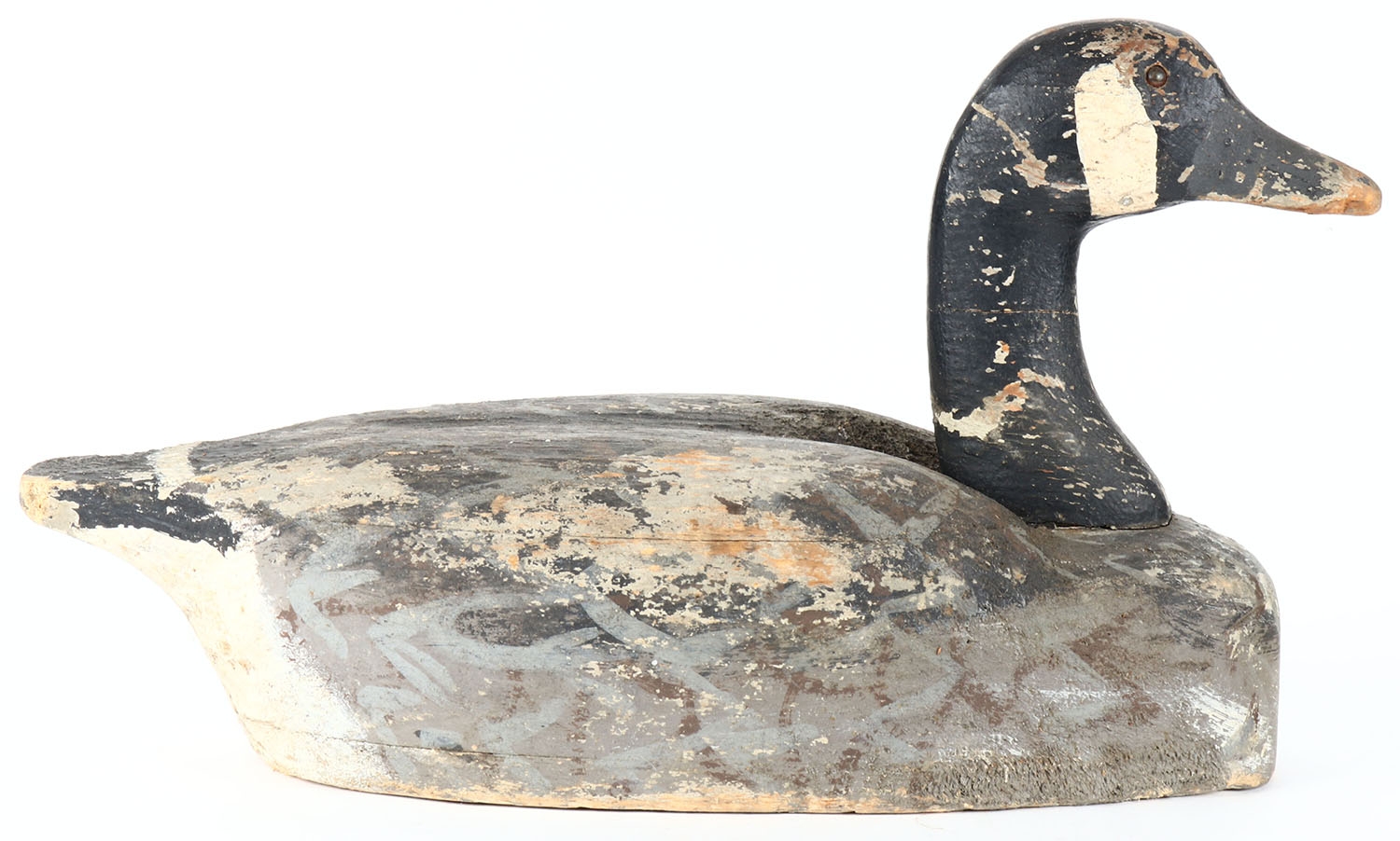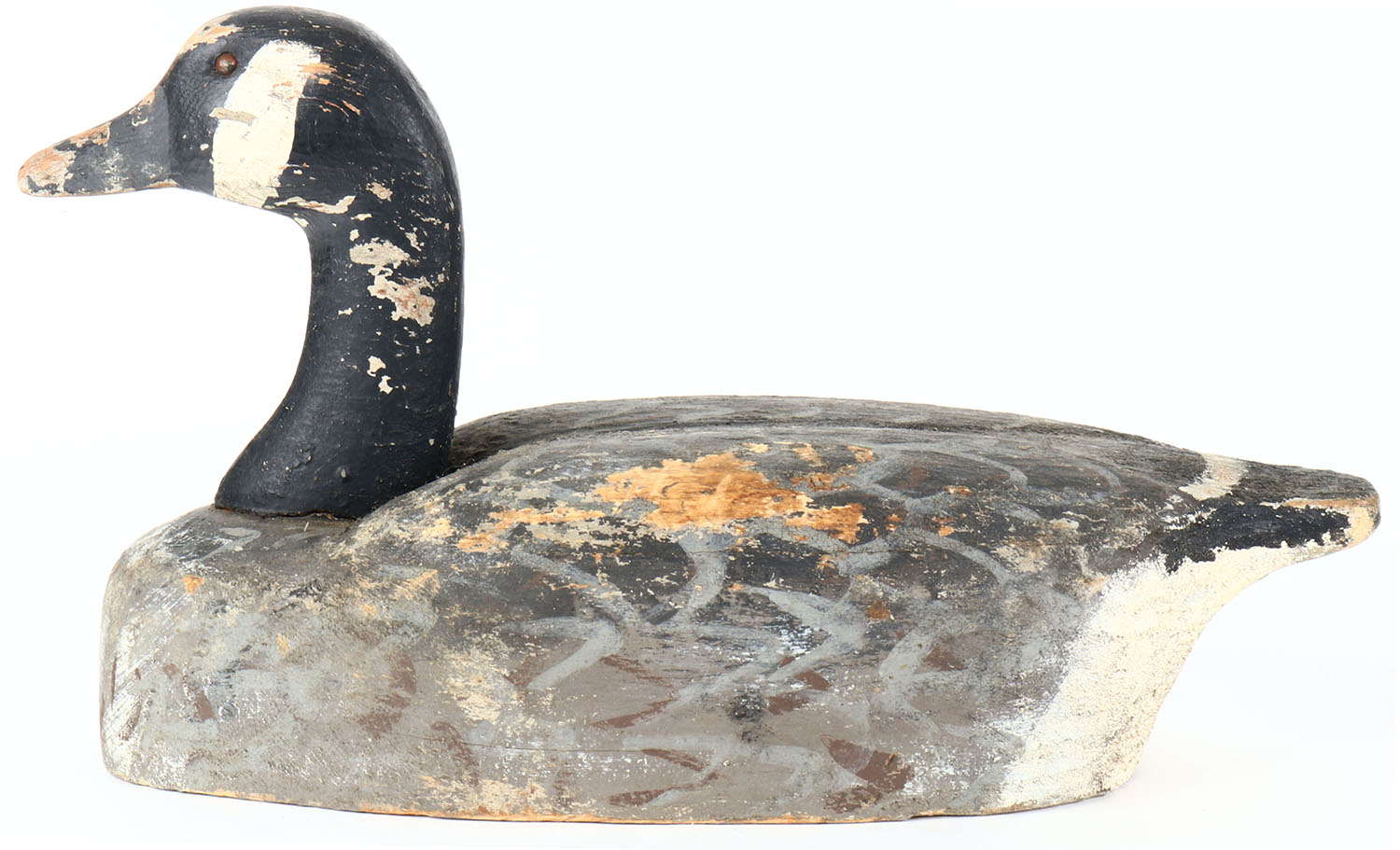 Canada Goose by Herters, Minnesota, glass eyes, hollow wood, old hunter repaint, has age cracks on entire body. Grade: Very Good - Value: 20 to 40