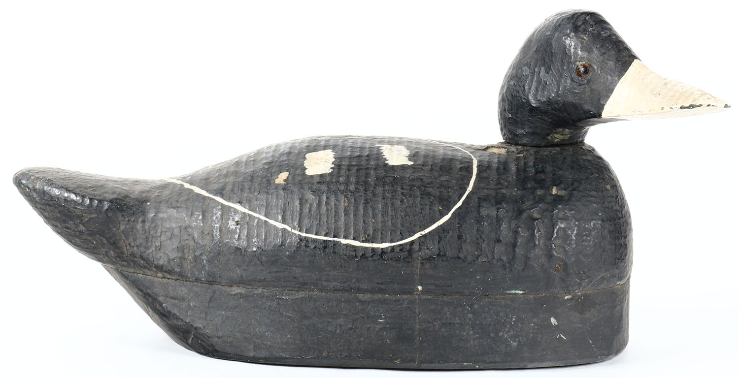 Coot by unknown maker, glass eyes, hollow wood, possible original paint, structurally excellent. Grade: Excellent - Value: 20 to 60