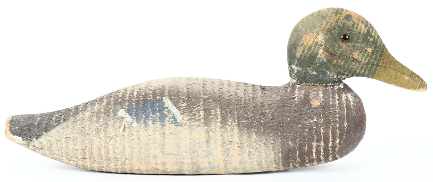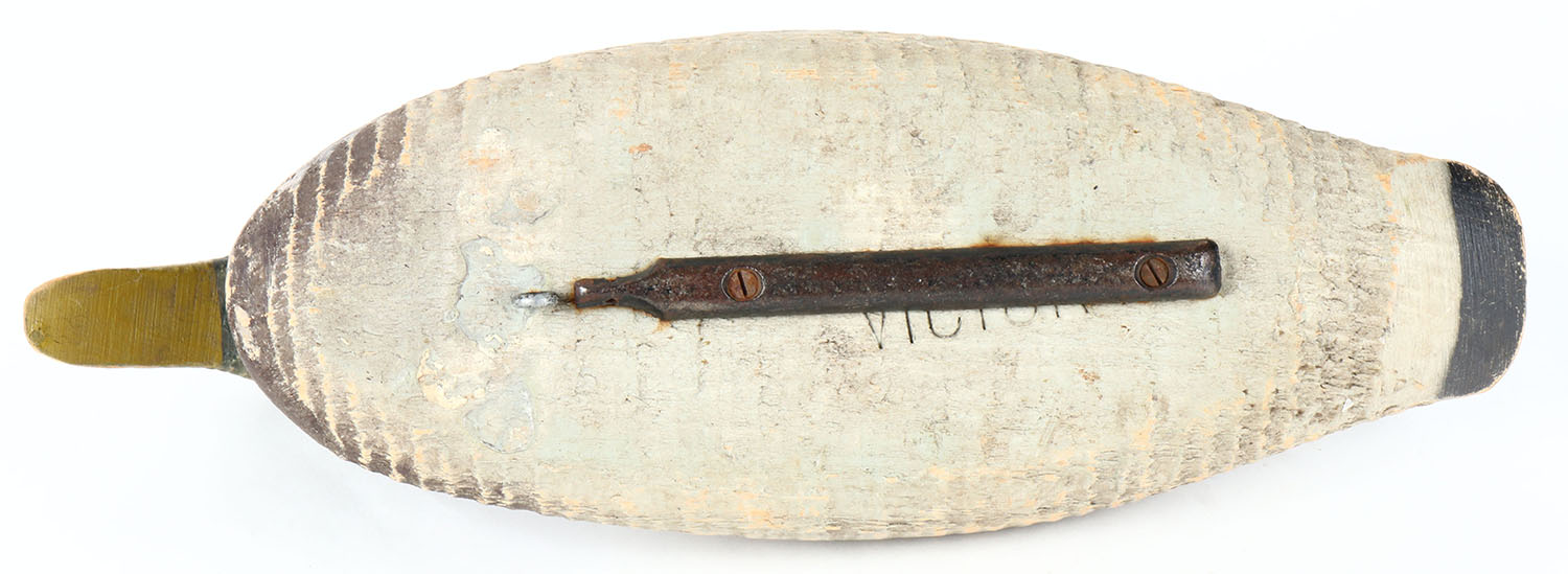 Mallard Drake by Victor Decoys, glass eyes, solid wood, original paint, structurally excellent, maker hard stamp on bottom. Grade: Very Good + - Value: 30 to 60