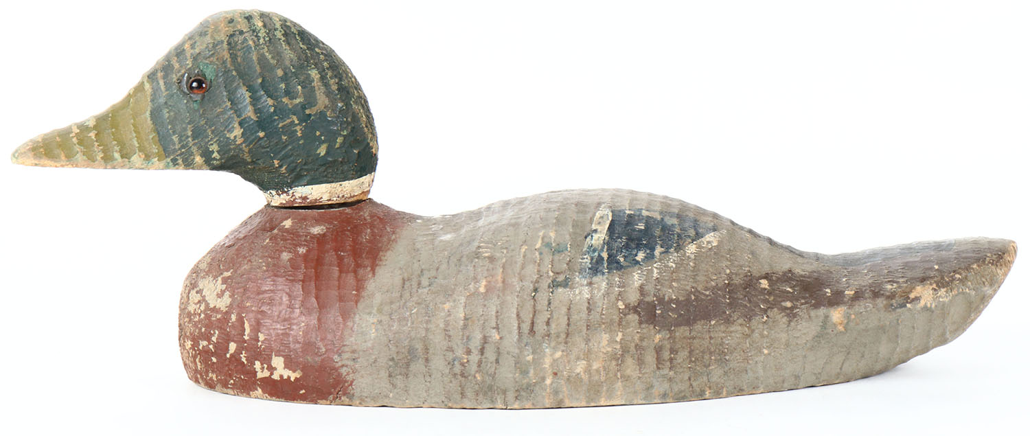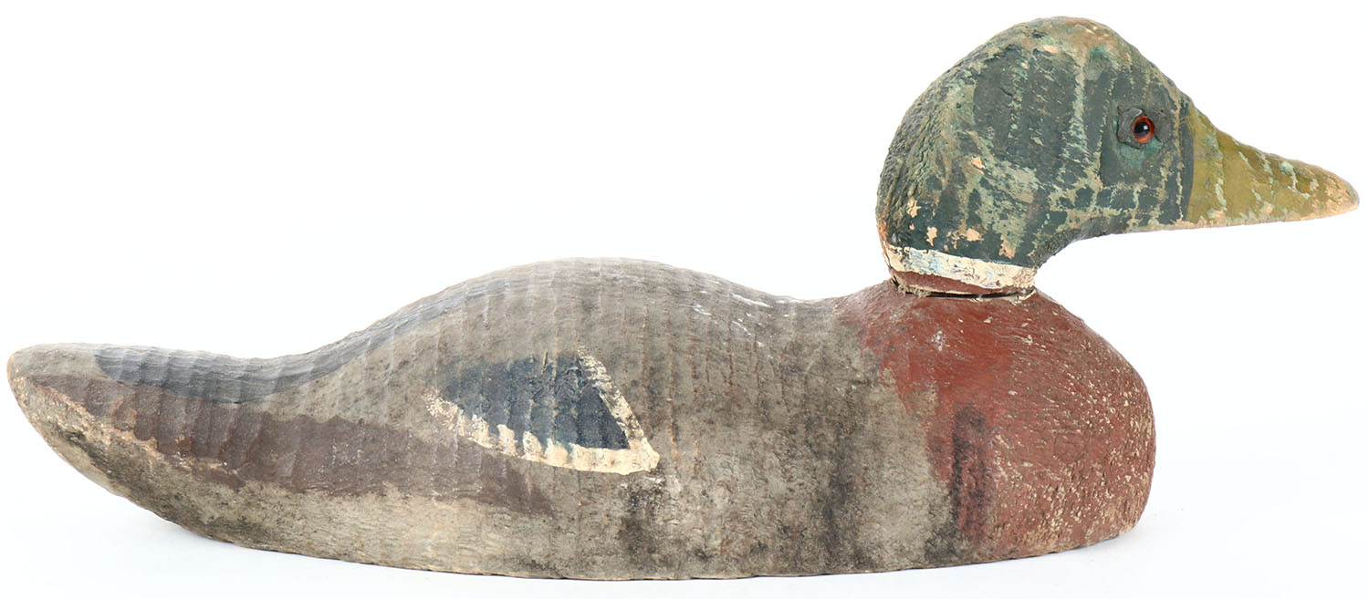 Mallard Drake by Padco, Pascagoula, MS, glass eyes, hollow wood, original paint, head is loose. Grade: Very Good - Value: 20 to 40