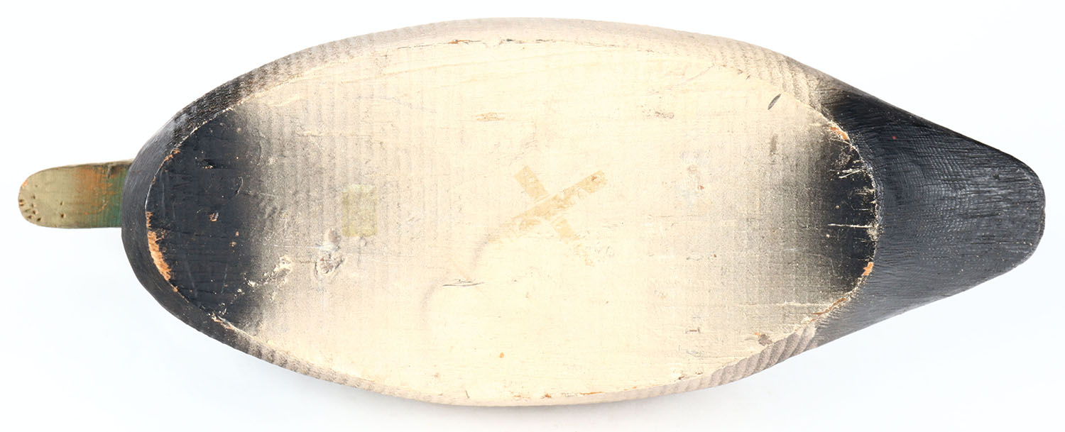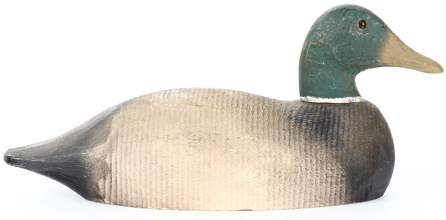 Mallard Drake by a combination of factories, Herters head on another factory lathe carved body, glass eyes, hollow wood, original paint, head is loose. Grade: Very Good - Value: 10 to 20