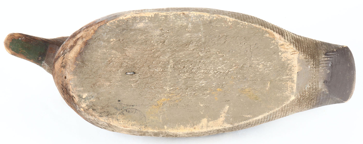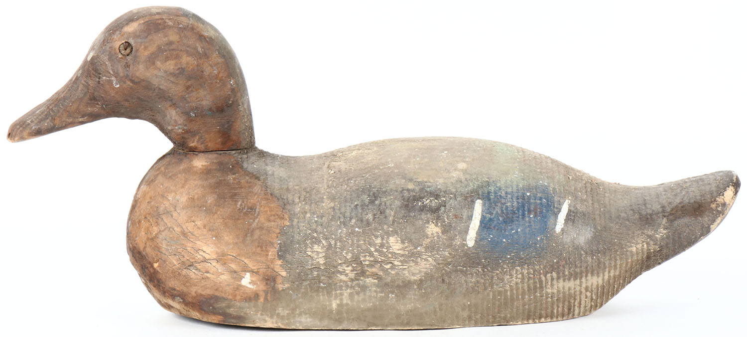 Mallard Hen by Animal Trap Company, Pascagoula, MS, eyes are missing, original paint with wear to the bear wood on the front of the decoy, head is loose. Grade: Very Good - Value: 10 to 30