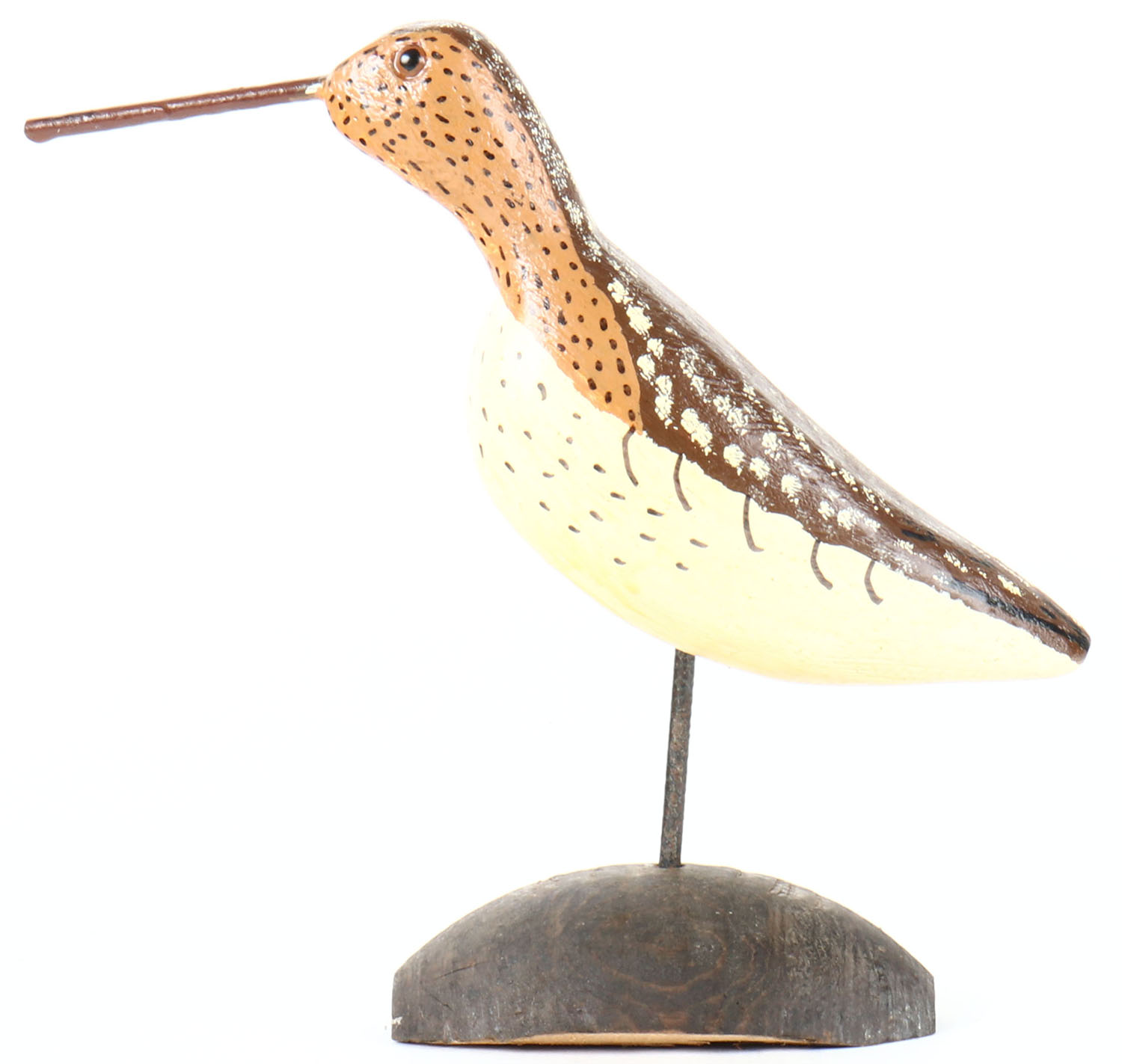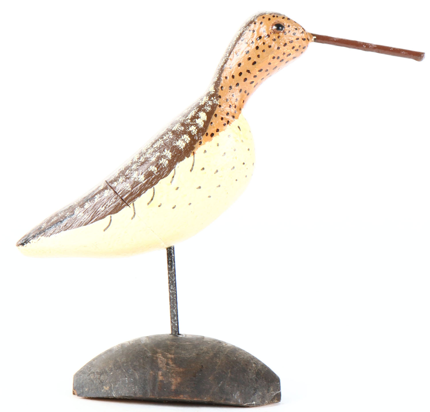 Shorebird unknown maker, painted eyes, solid wood on stand, original paint, structurally excellent. Grade: Very Good + - Value: 10 to 30