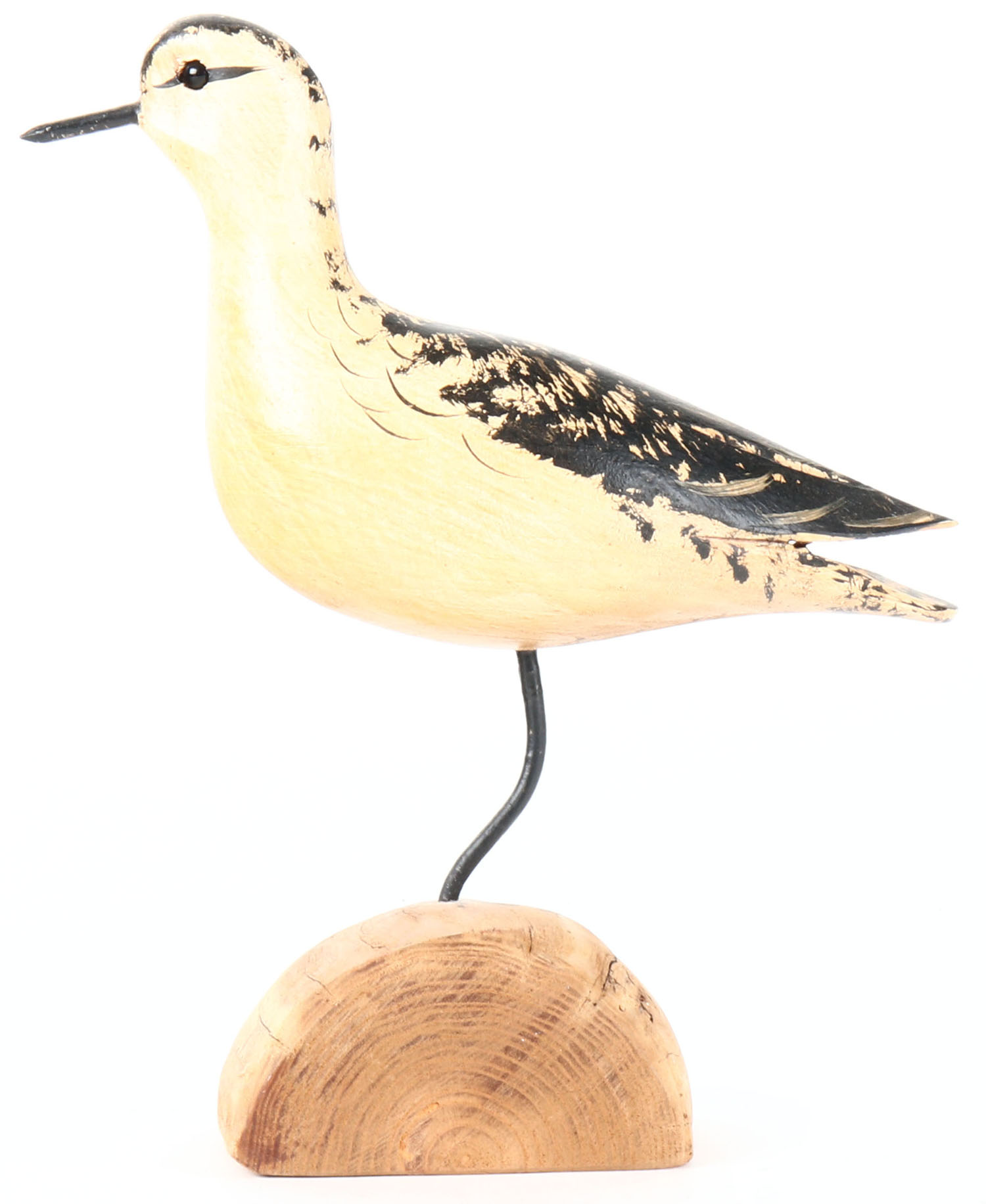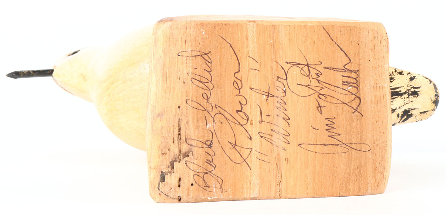 Black Bellied Plover by Jim Slack, Illinois, glass eyes, solid woo on wood stand, original paint, structurally excellent, signed on bottom. Grade: Excellent - Value: 20 to 40