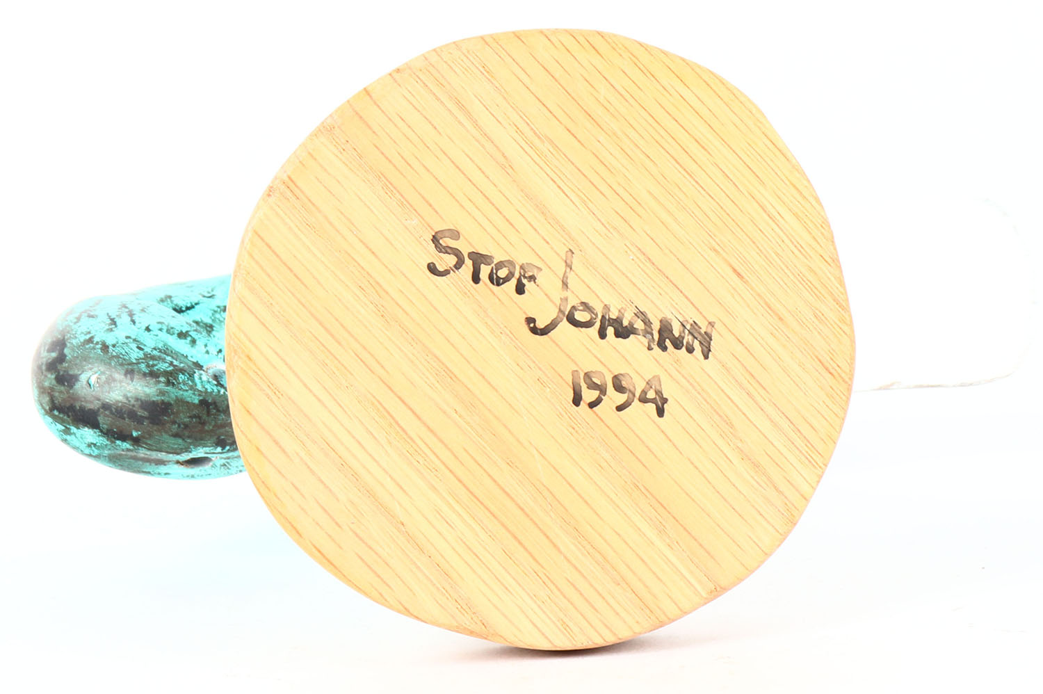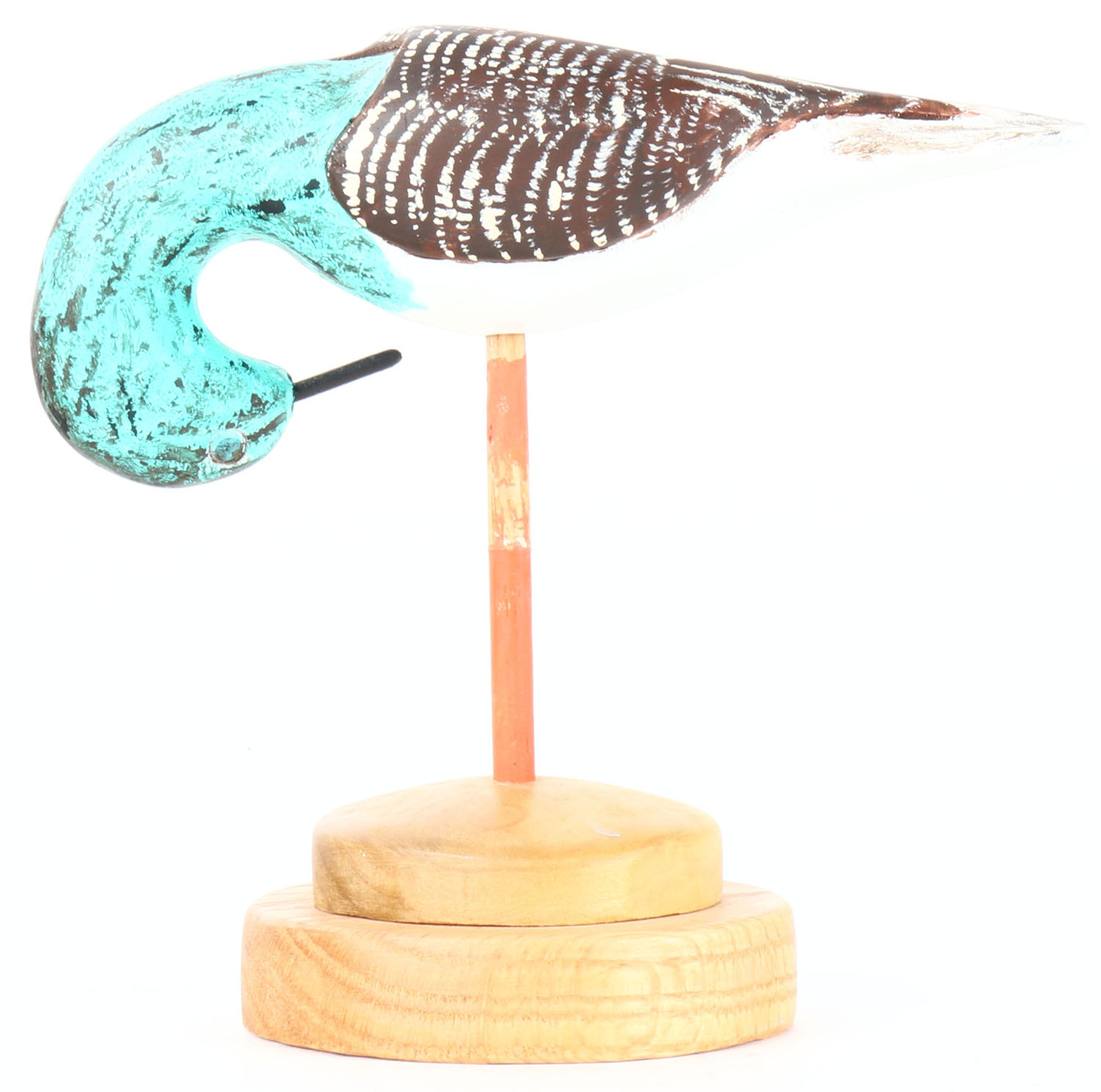 ? Shorebird by Stor Johann, glass eyes, solid wood on wood stand, original paint, structurally excellent, signed on bottom. Grade: Excellent - Value: 20 to 50