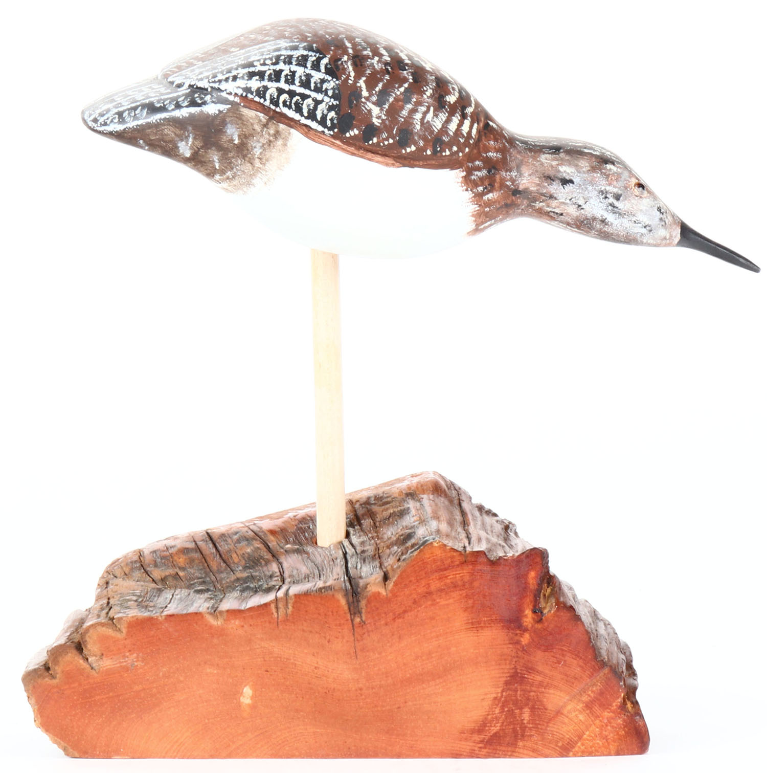 Shorebird by unknown maker, glass eyes, solid wood on wood stand, original paint, structurally excellent. Grade: MINT - Value: 10 to 20