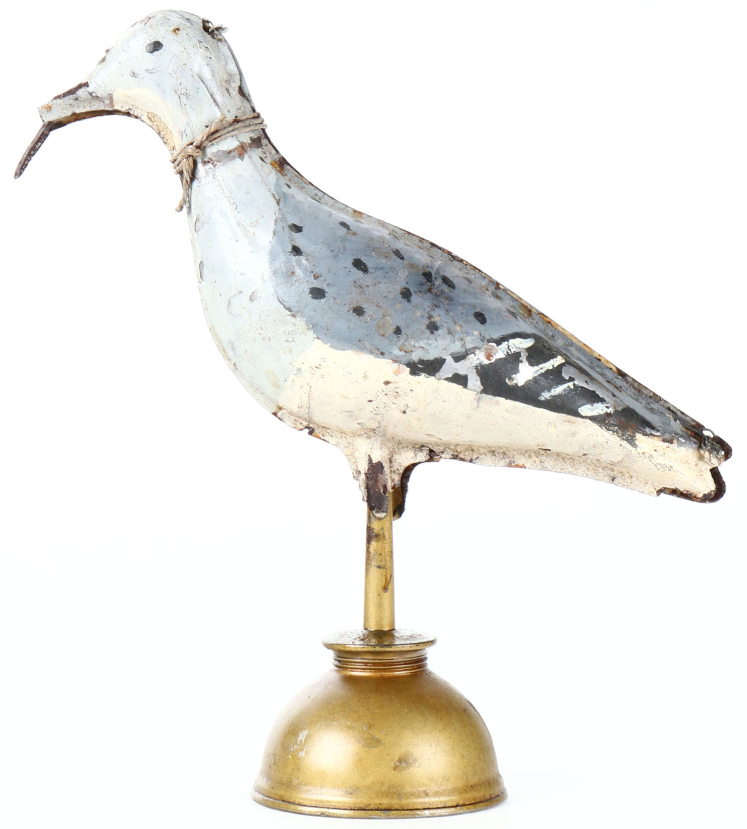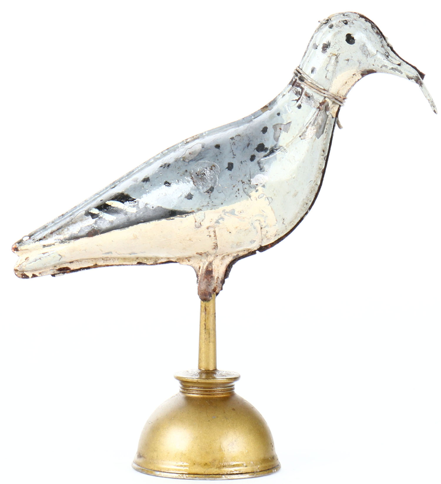 Metal 2pc Shorebird commonly referred to as Tinnies, Shorebird likely by WM. Read and Sons, competitor of Strater & Sohier, Boston MA, painted eyes, with wire hinges, original paint, 10'' OAL. Grade: Excellent - Value: 50 to 150
