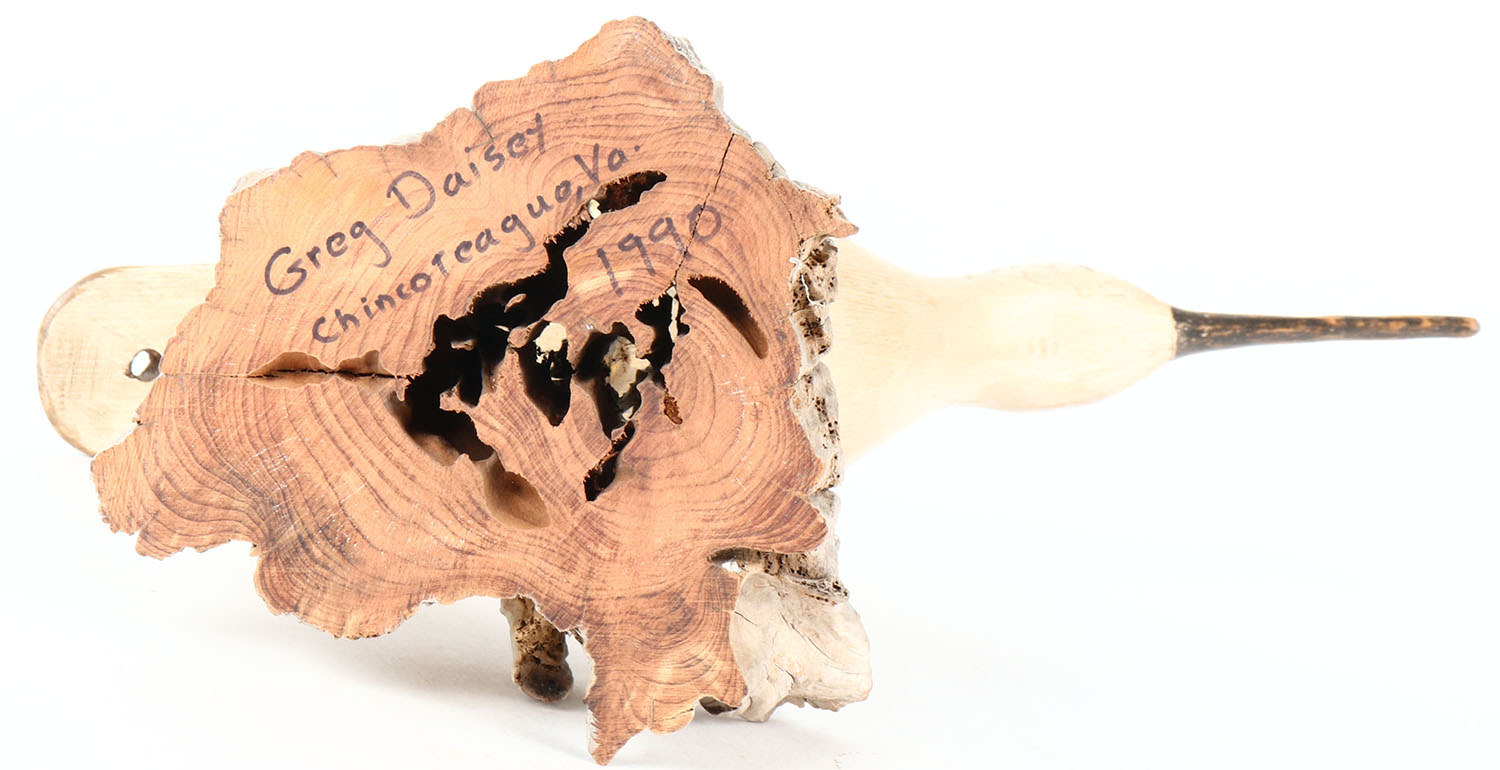 Shorebird by Greg Daisey, Chincoteague, Va, tack eyes, solid wood on wood stand, original paint, structurally excellent, signed and branded on bottom. Grade: Excellent ++ - Value: 30 to 60