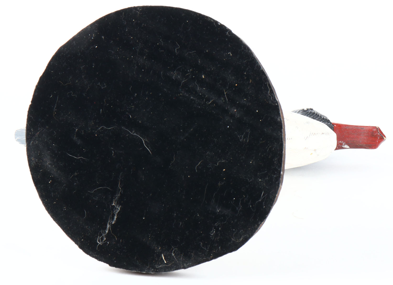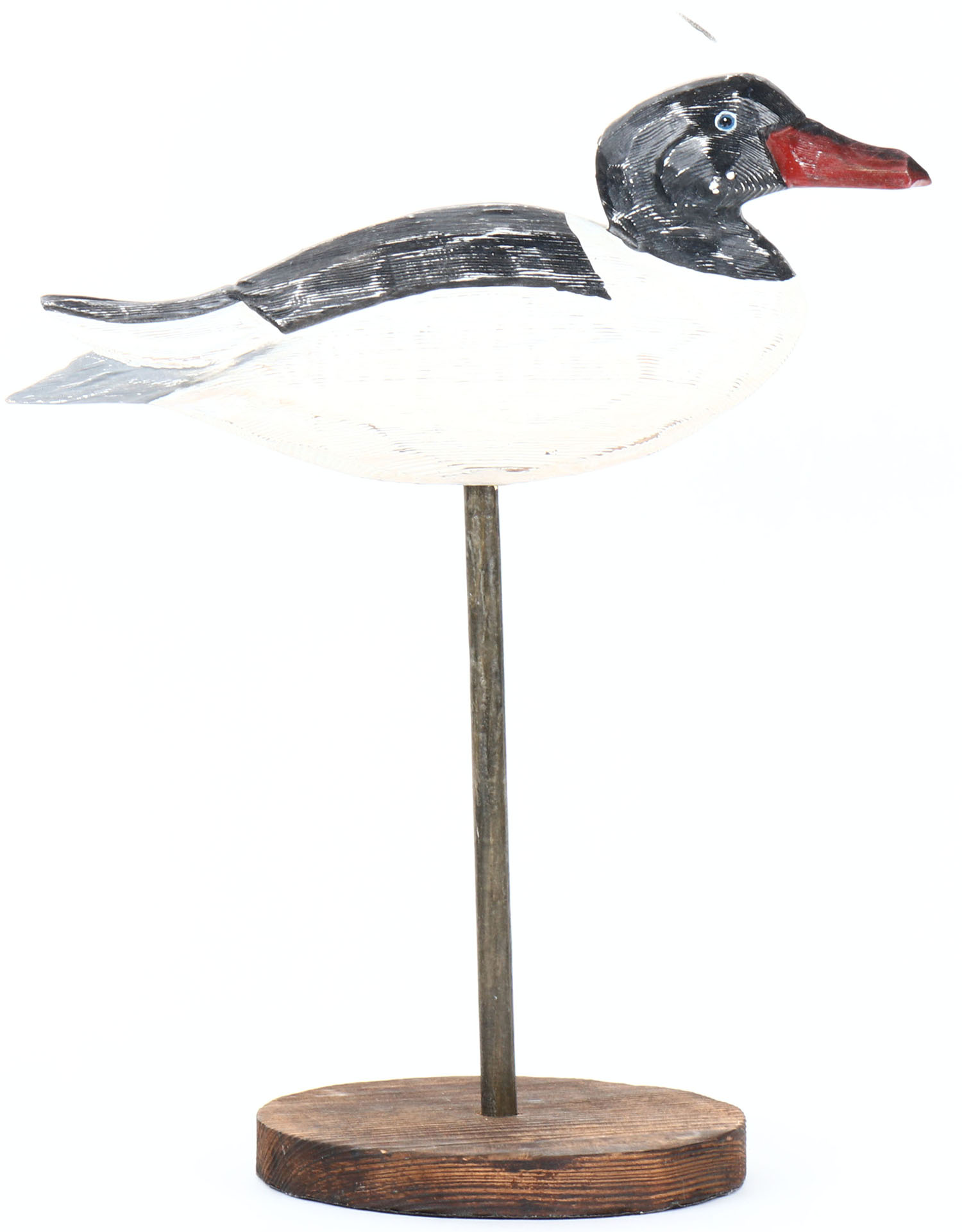 Shorebird by unknown maker, painted eyes, solid wood on wood stand, original paint distressed to appear old, structurally excellent. Grade: Excellent - Value: 10 to 40
