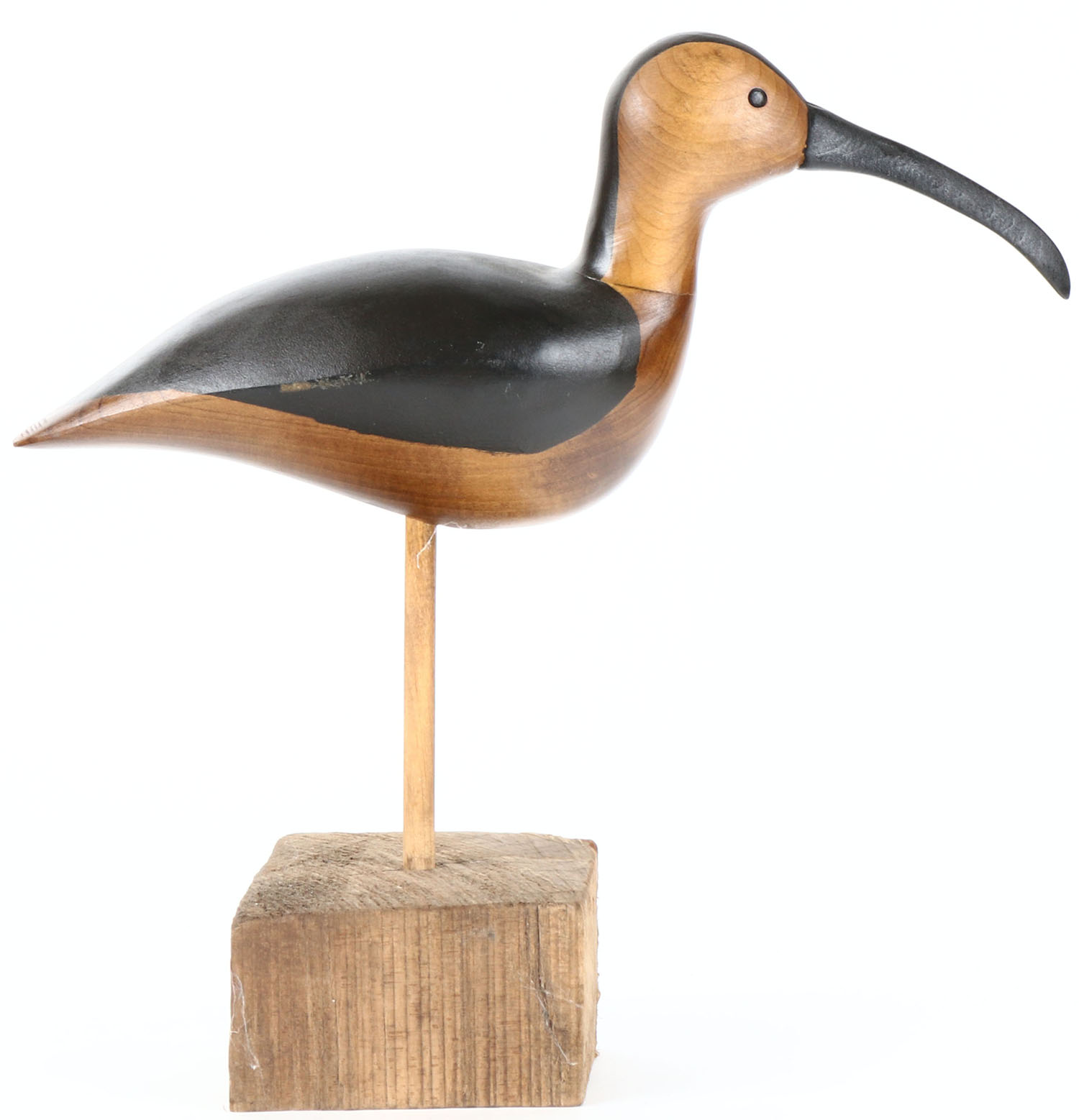 Shorebird by Cabela's, drilled in eyes, solid wood, original stain, structurally excellent, branded by CABELA'S on bottom. Grade: MINT - Value: 10 to 30