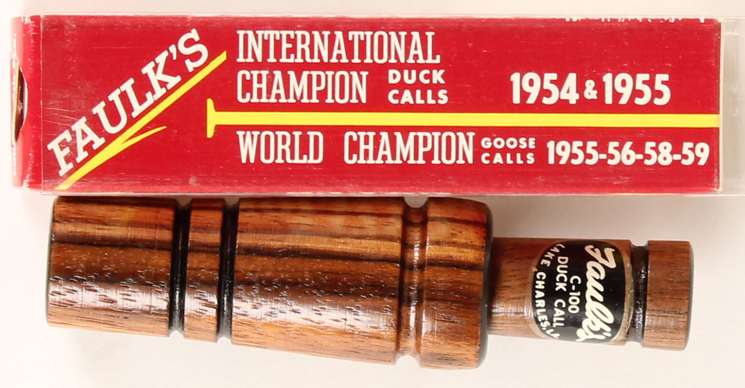Faulk's C-100 Duck call in the original box, logo is 100% intact. Grade: MINT - Value: 10 to 40