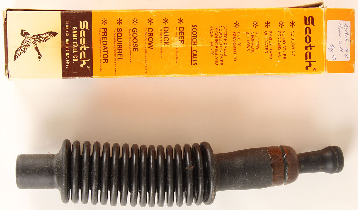 Scotch Goose Call in original box, cal is nice but box shows some wear. Grade: Very Good ++ - Value: 6 to 30