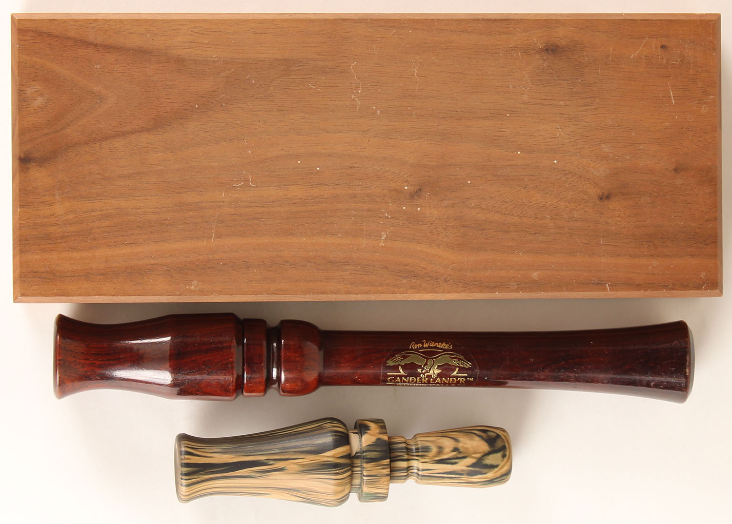 Set of 2 Calls, 1 Goose calls by Gander Land'r & 1 Duck unmarked, not sure these call go with this box originally. Grade: Excellent - Value: 10 to 30