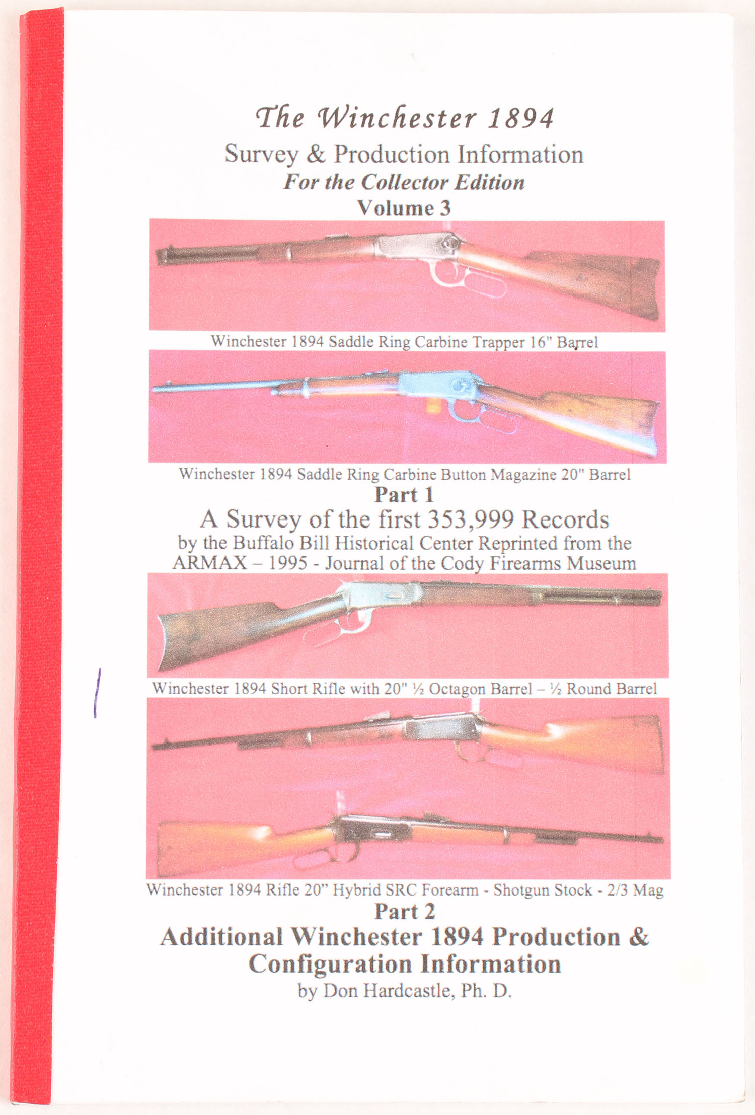 The Winchester 1894 Survey & Production Information For The Collector Edition Volume 3, 5 1/2'' x 8 1/2''. 48 pages, pages clean, binding tight, papercover very good. Grade: Excellent - Value: 10 to 100