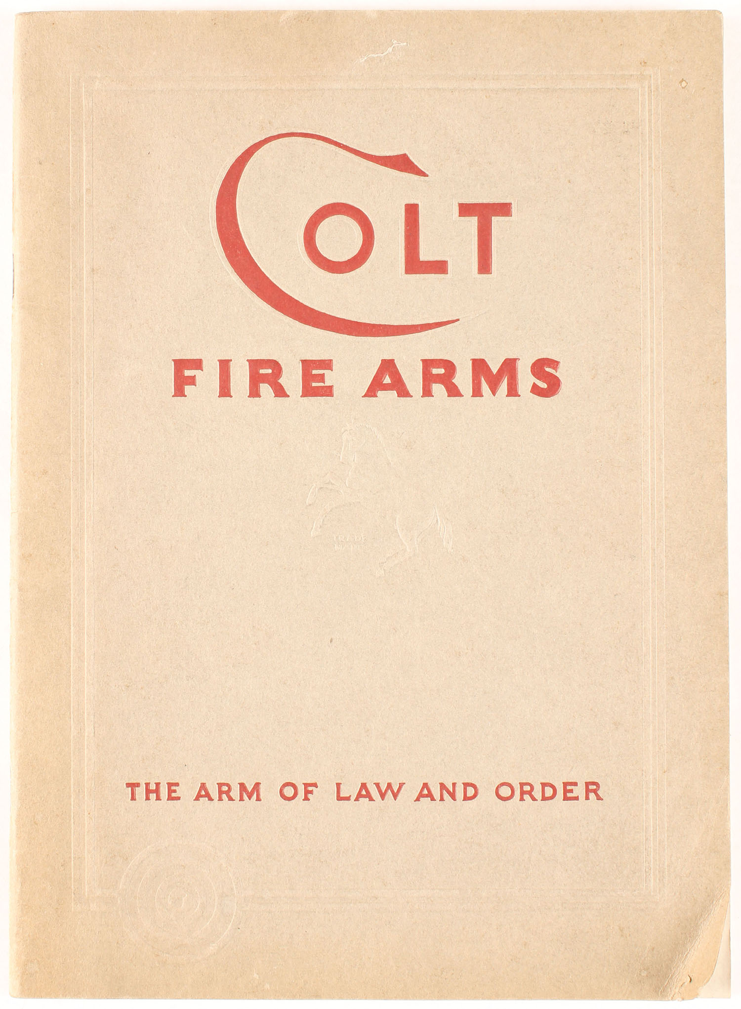 Colt Firearms Catalog 1937, 9 1/4'' x 6 11/16'' 40 pages, pages clean, staplebound, front cover has rip in bottom right corner. Grade: Very Good + - Value: 10 to 100