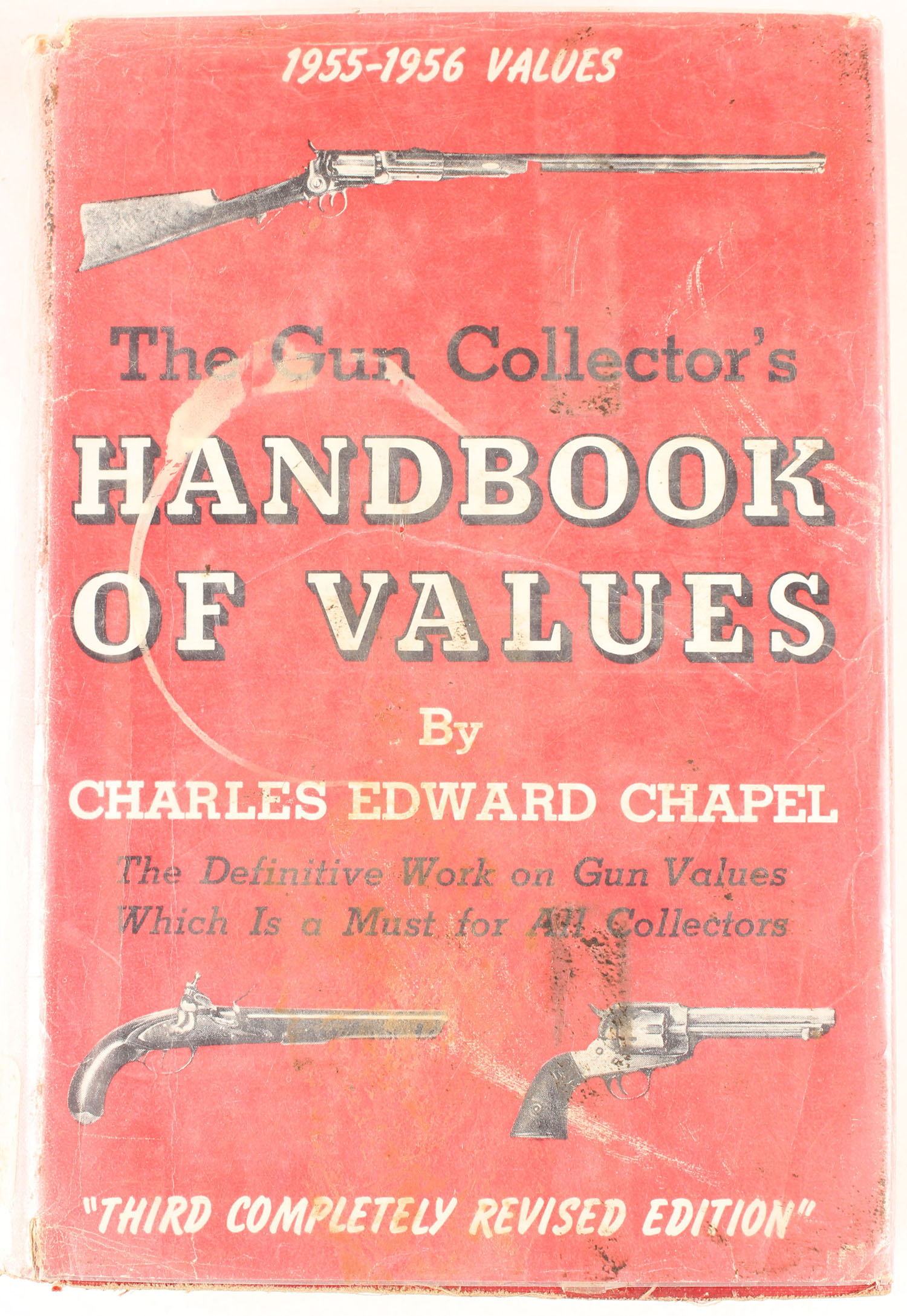 The Gun Collector's Handbook of Values by Charles Edward Chapel 1955-1956 values, ''Third Completely Revised Edition'' 5 1/2'' x 8 1/2''. 398 pages, pages clean, binding tight, dustjacket has some wear, b/w images. Value: $30 Grade: Very Good + - Value: 10 to 30