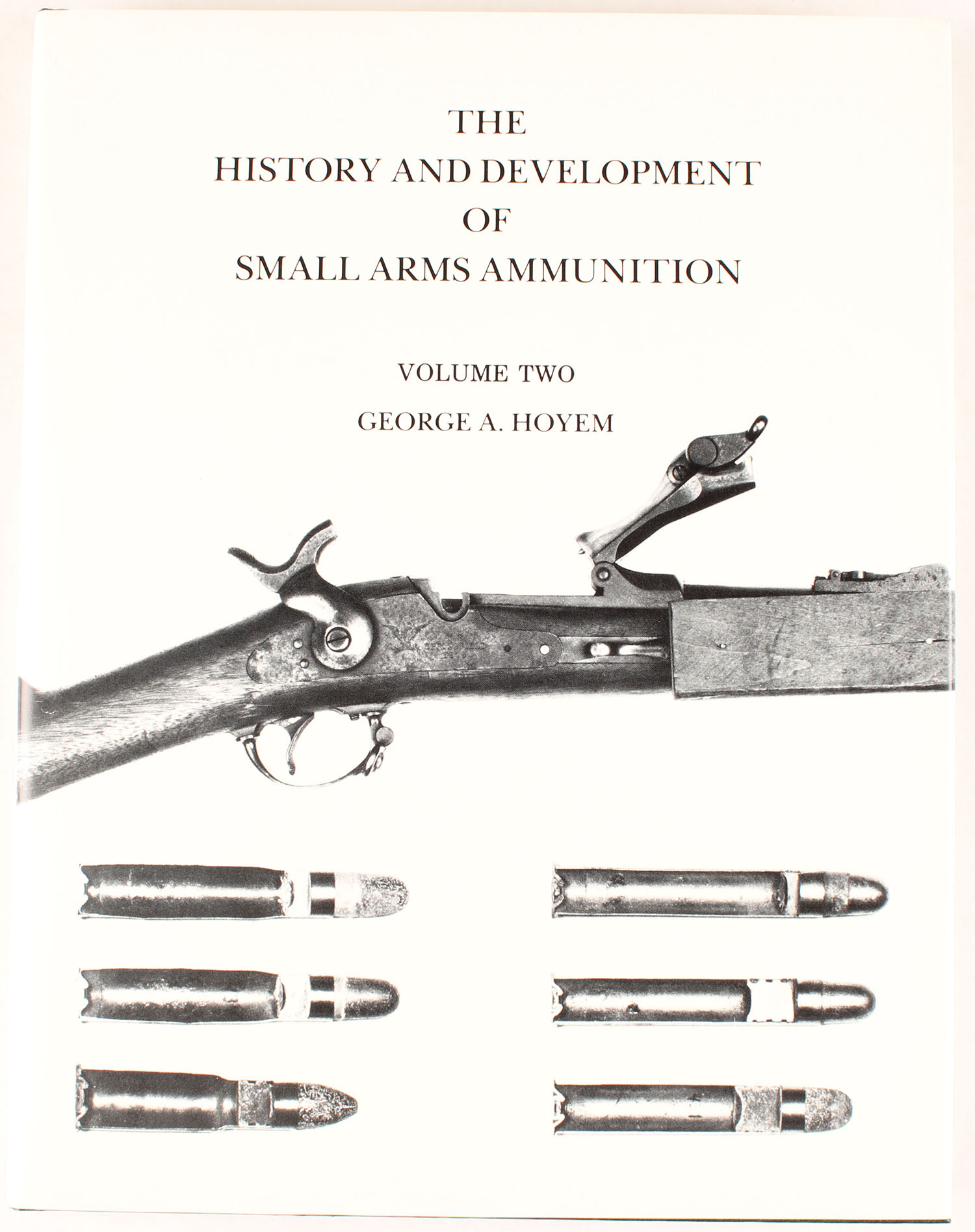 The History and Development of Small Arms Ammunition (Volume 2 - Centerfire: Primitive, and Martial Long Arms) by George A. Hoymen 1990, 8 1/2'' x 11''. 303 pages, pages clean, binding tight, hardcover and dustjacket mint, b/w images. Value: $500 Grade: MINT - Value: 200 to 500