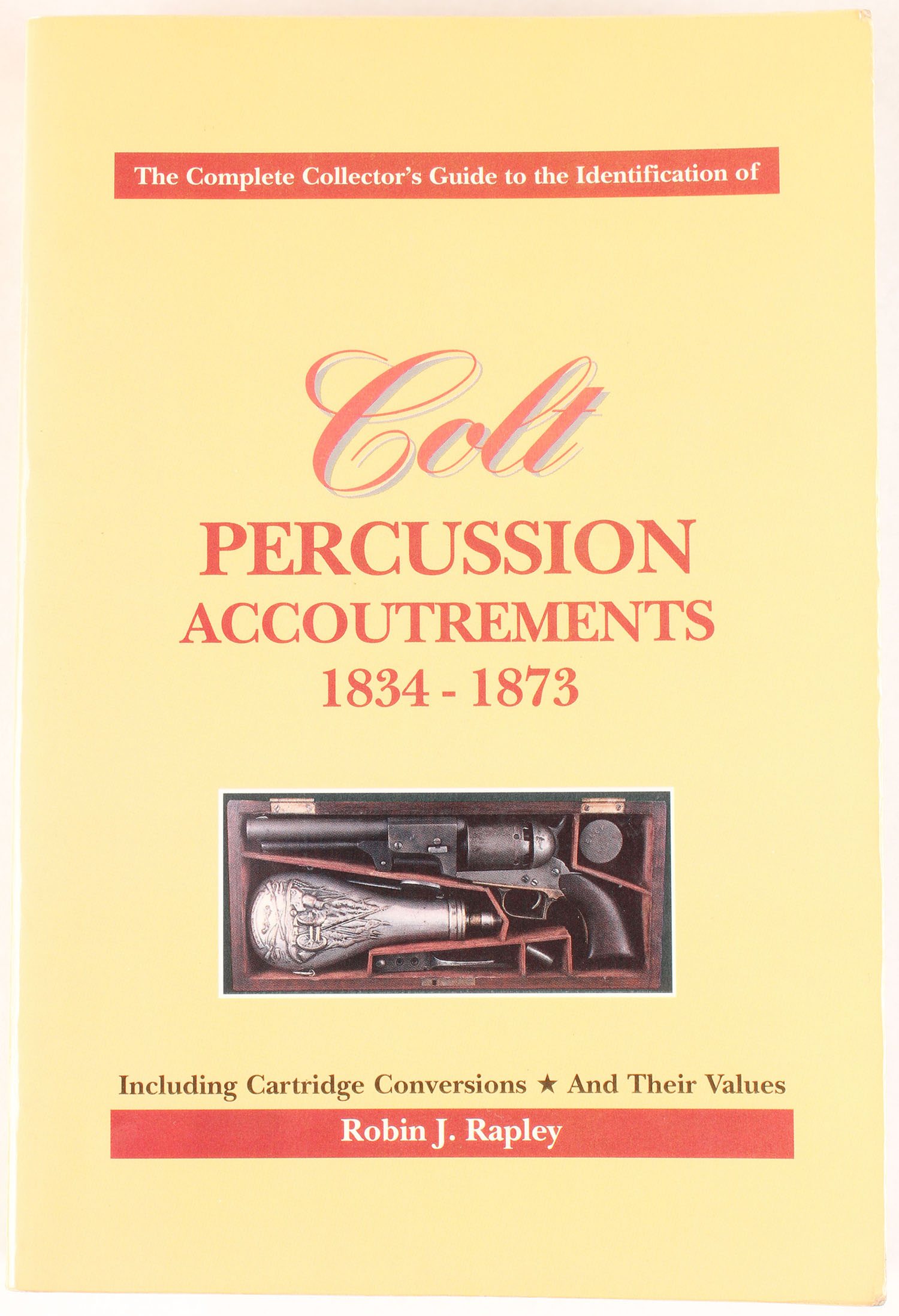 Colt Percussion Accoutrements 1834-1873: Including Cartridge Conversions and Their Values by Robin J. Rapley, 6'' x 9''. 432 pages, pages clean, binding tight, softcover excellent, b/w images. Value: $350 Grade: Excellent ++ - Value: 20 to 100