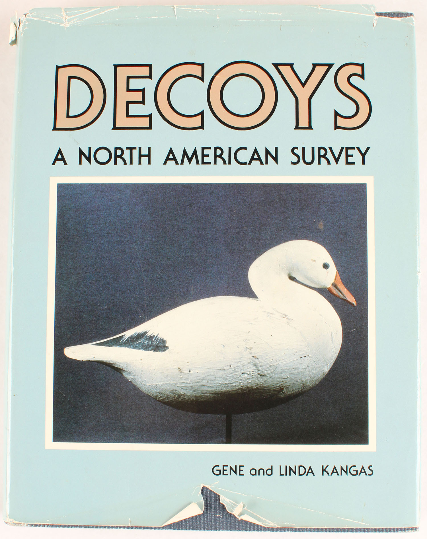 Decoys: A North American Survey by Gene and Linda Kangas 1983, 8 1/2'' x 11 1/2''. 332 pages, pages clean, binding tight, hardcover very good, dustjacket has rips in it, b/w and colored images. Value: $50 Grade: Very Good - Value: 2 to 50