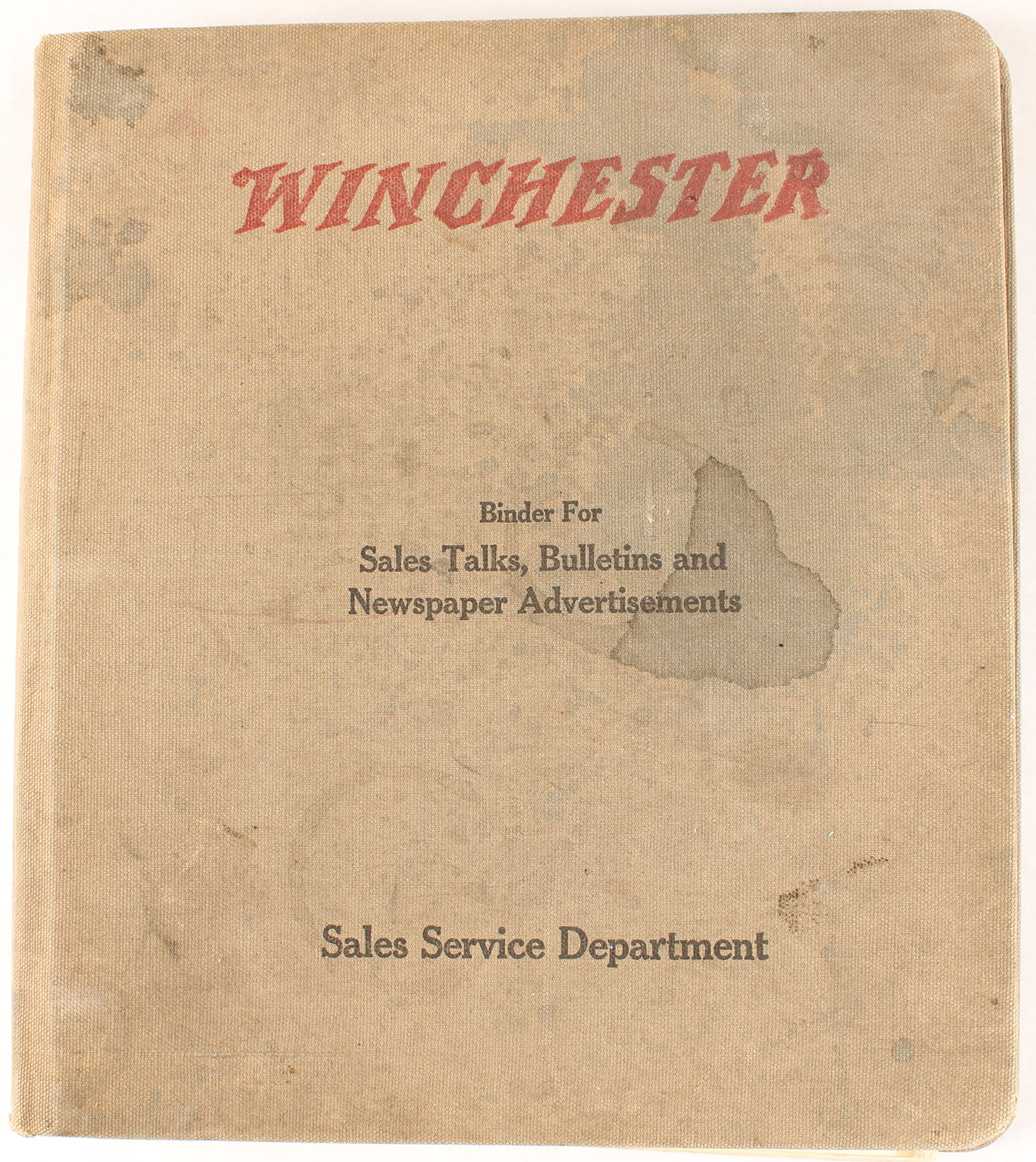 Winchester Binder For Sales Talks, Bulletins and Newspaper Advertisements in a 3 ring binder. Grade: Very Good + - Value: 4 to 80