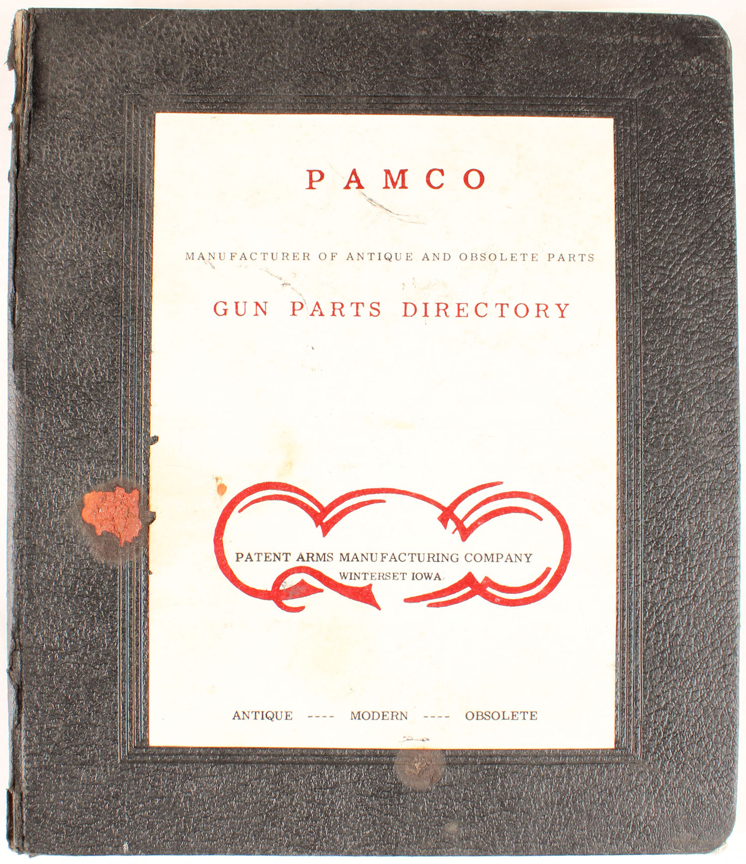 Pamco: Manufacturing of Antique and Obsolete Parts, Gun Parts Directory published by S & S Press Patent Arms Manufacturing Company in a 3 ring binder. Grade: Very Good + - Value: 2 to 100