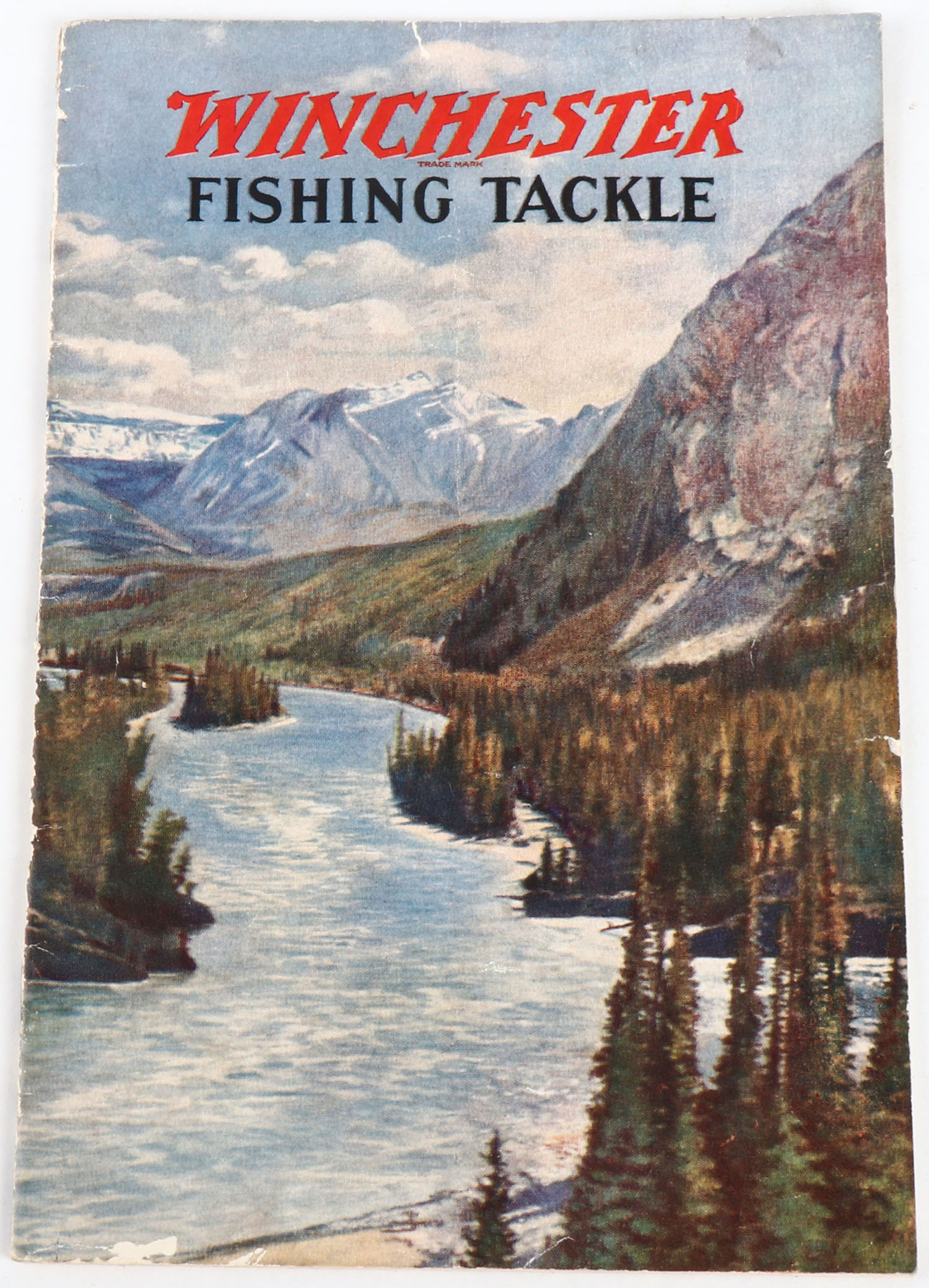 1924 WINCHESTER FISHING TACKLE Full line catalog, pictures all fishing items like the Wobbler, 5 & 3 hook minnows, rods, reels, line, spinners, nets plus much more, 32 pages, 5 5/8'' x 8 1/2'', light wear to outer binding otherwise great. Grade: Excellent - Value: 40 to 250