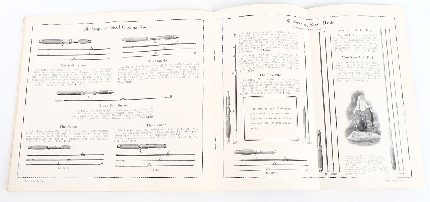 | 1927 Shakespeare Fishing Catalog, TACKLE TRIUMPHS, great image o...