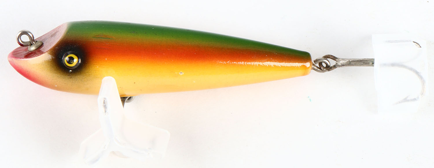 RARE MOONLIGHT BAIT Co. 3300 Minnow, RAINBOW colors, PE, 2 hooks, only a very few light hook dings to belly otherwise near mint. Grade: Excellent ++ - Value: 50 to 250