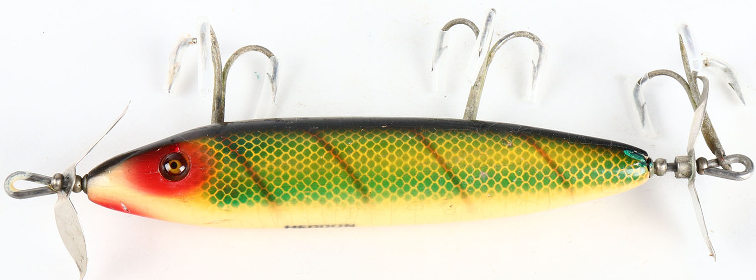 | Heddon SOS Minnow, wood lure, GE, Green Scale, 3 hooks, marked b...
