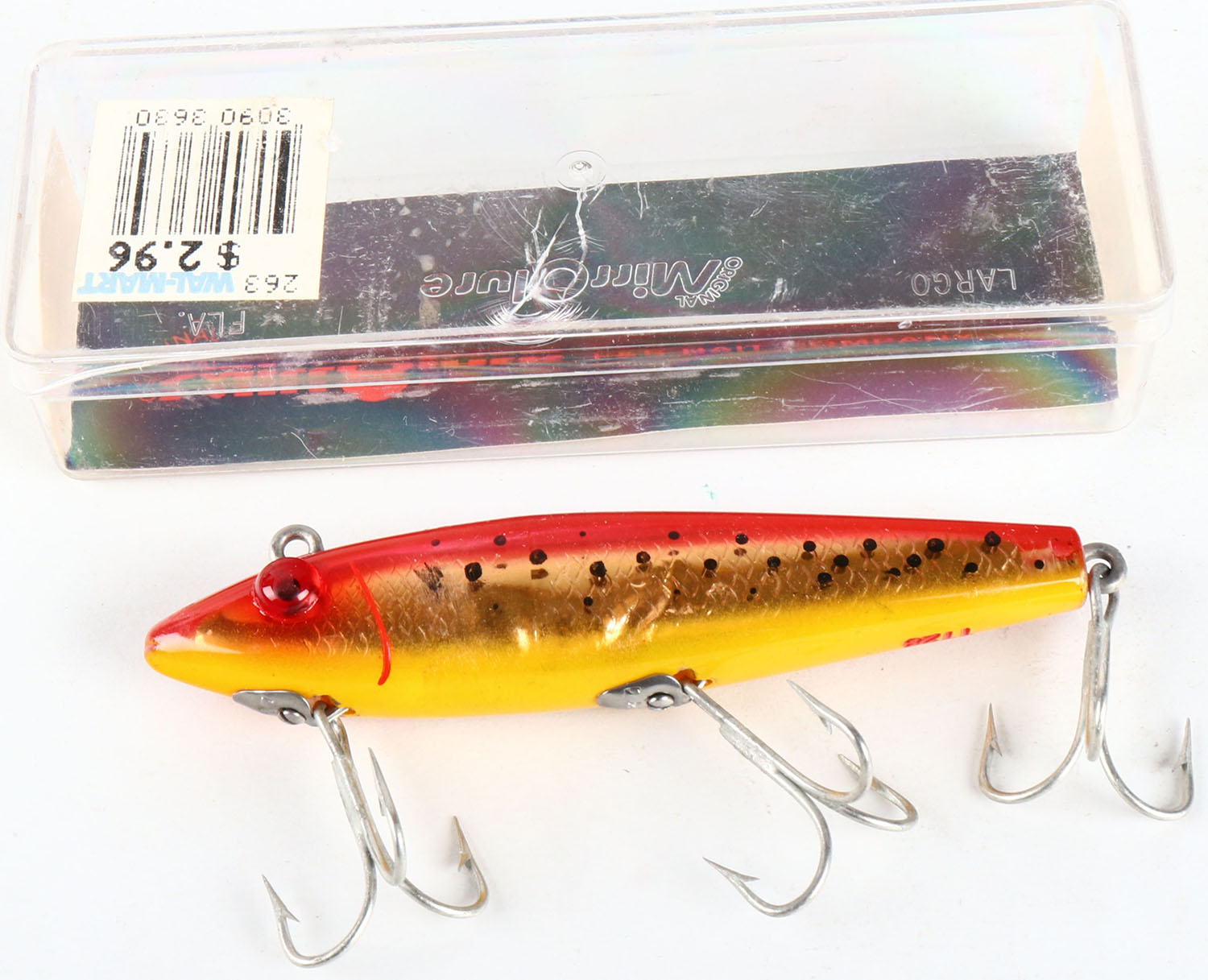 MirrOlure by L&S Baits Co., in the original box, red & gold, GE, 3 hooks, No TT28, 3 1/2'' long. Grade: Excellent - Value: 2 to 30