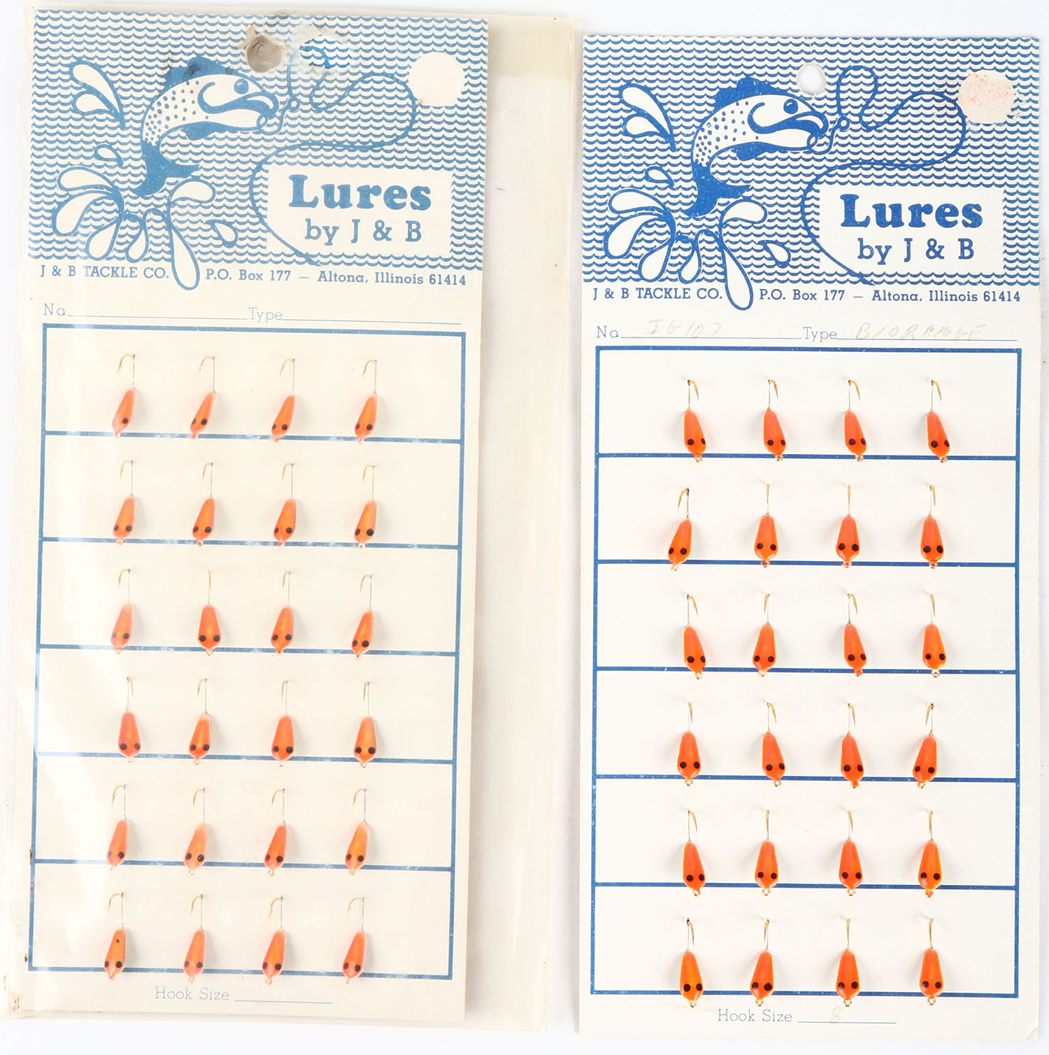 | Lot of 2 J&B Tackle Co. Full cards of Size 8 lures, one orange ...