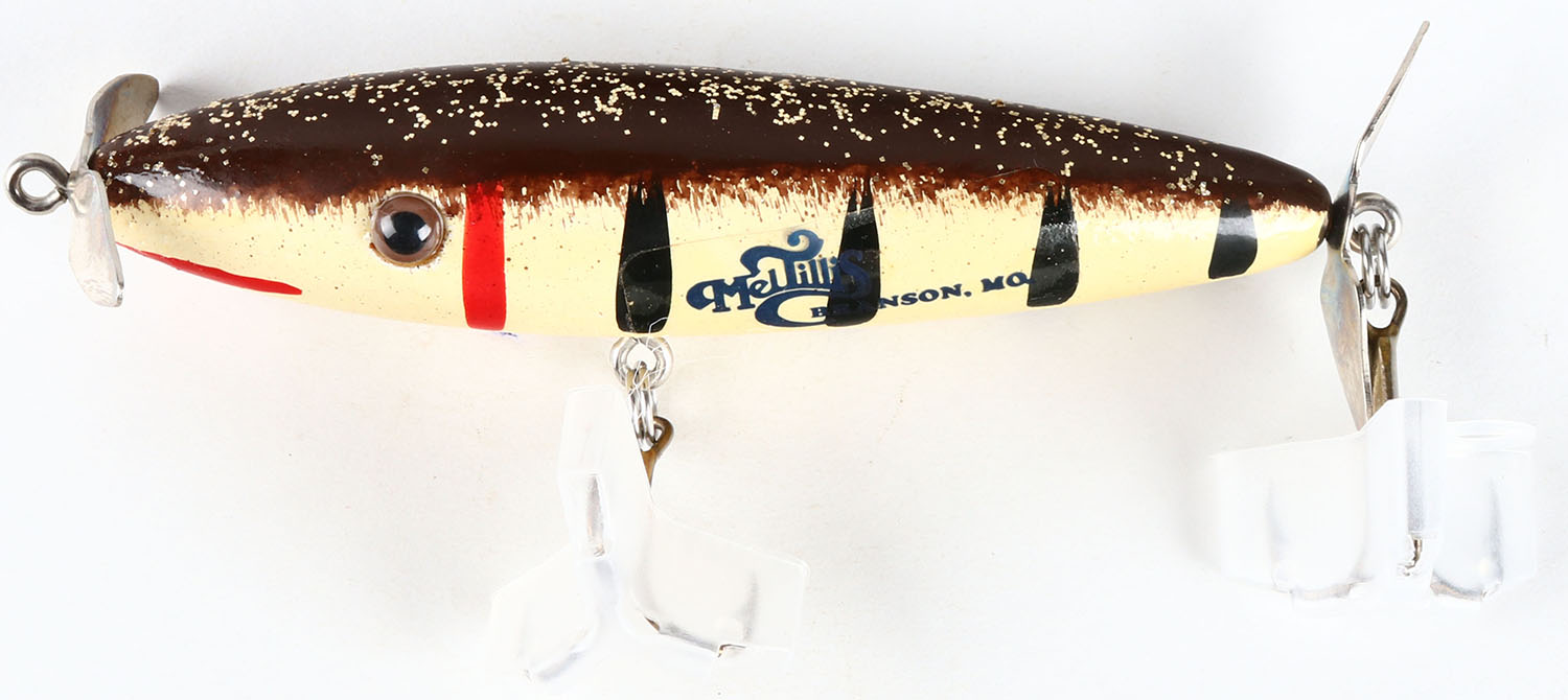 Meltillis Sputterbug lure, GE, brown & white with stripes. Grade: Excellent ++ - Value: 6 to 30