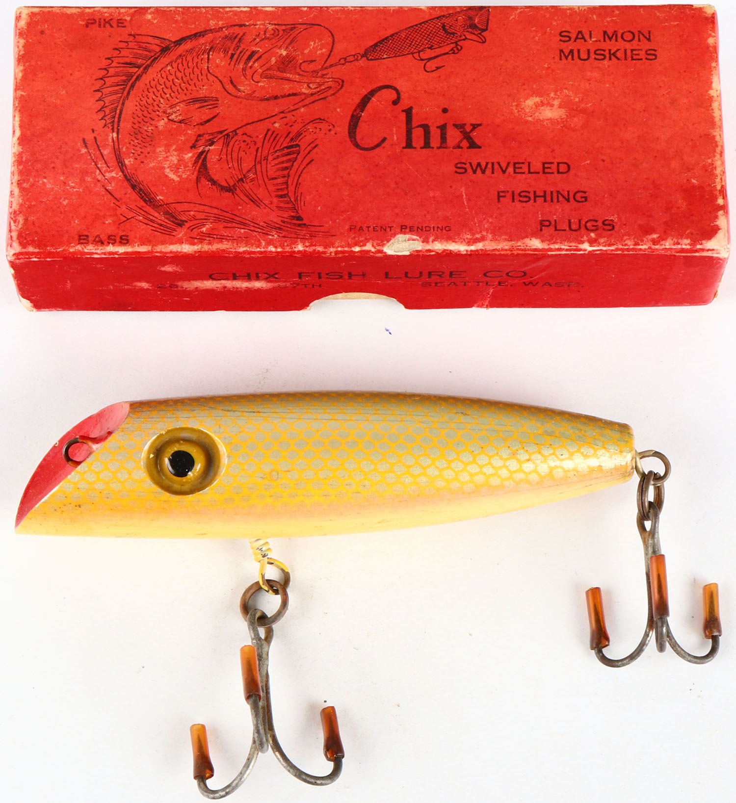 Chix Salmon Plug in orginal box, 5''. Grade: Excellent ++ - Value: 10 to 50