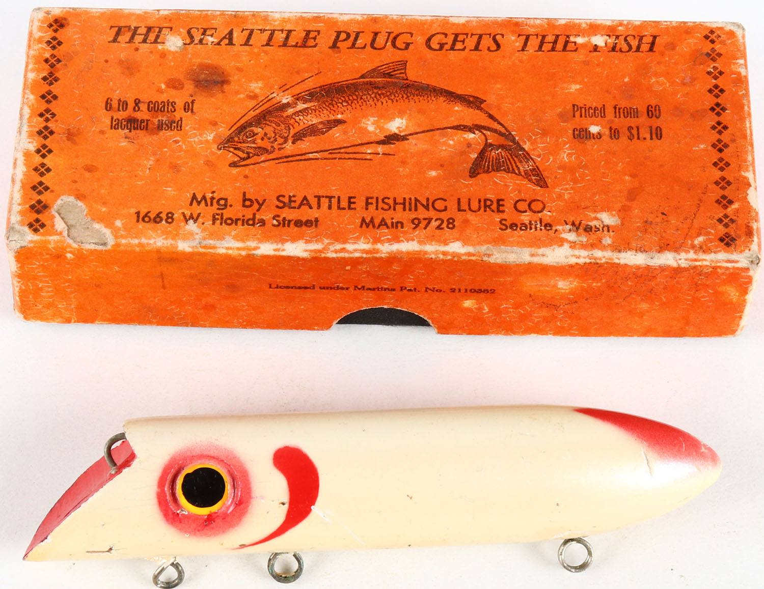 Seattle Salmon Plug in original box, 5'', box is marked Seattle Special Pearl Red Gill. Grade: Excellent ++ - Value: 20 to 60