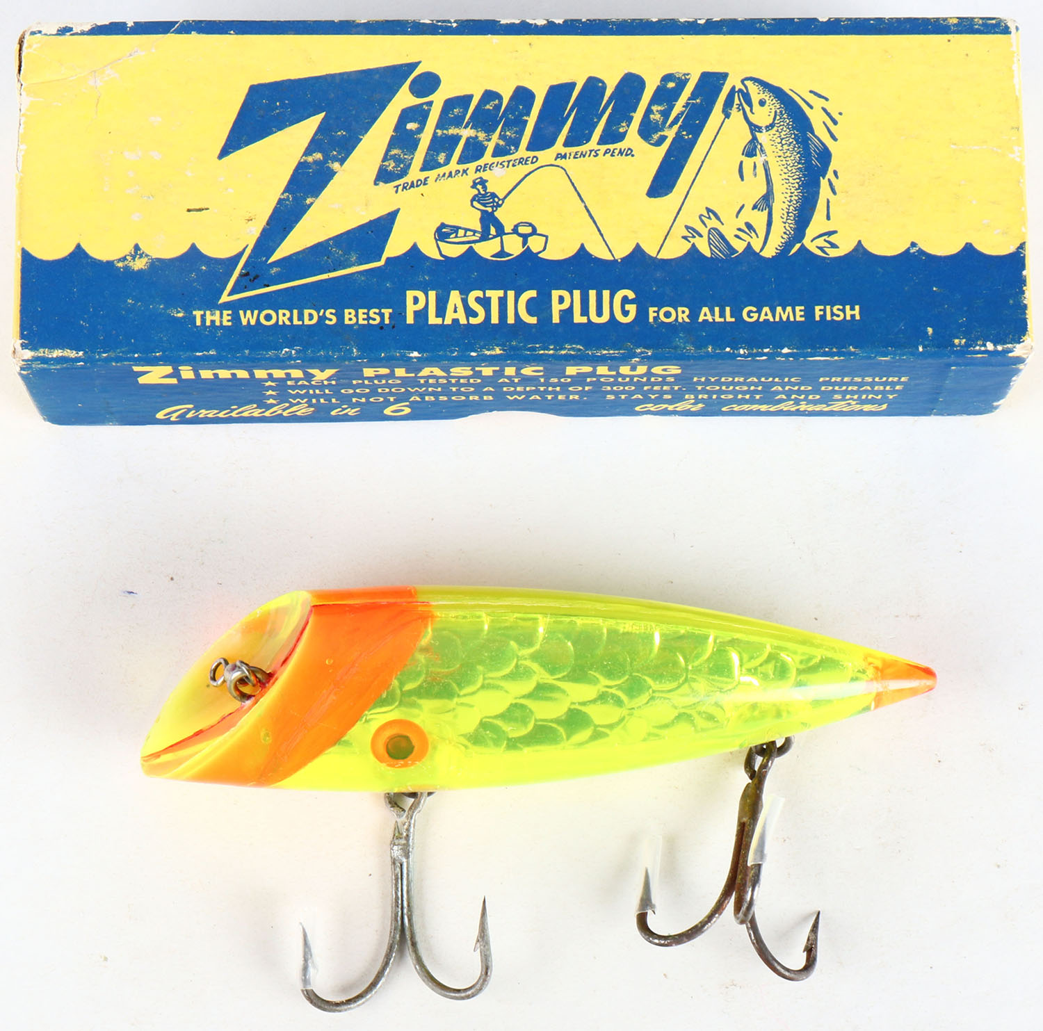 | Zimmy Plastic Salmon Plug in original box, 2- Silver Flash, PE. ...
