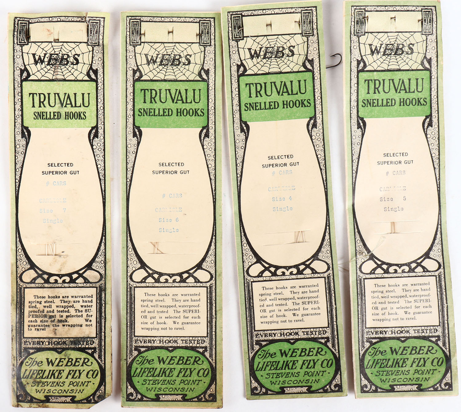 Lot of 4 Webs Truvalu Snelled Hooks on cards, all are full of 6 hooks with leaders. Grade: Excellent - Value: 6 to 30