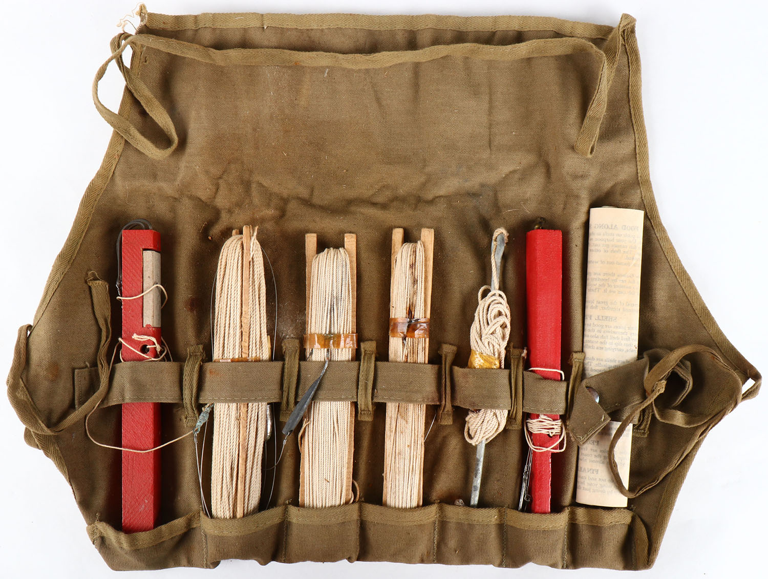 WWII USAAF Air Force Military Fishing Survival Kit, has many hooks on line with hook sharpener, has original instructions, canvas is marked Kit-Fishing AN6522-1. Grade: Excellent - Value: 30 to 150