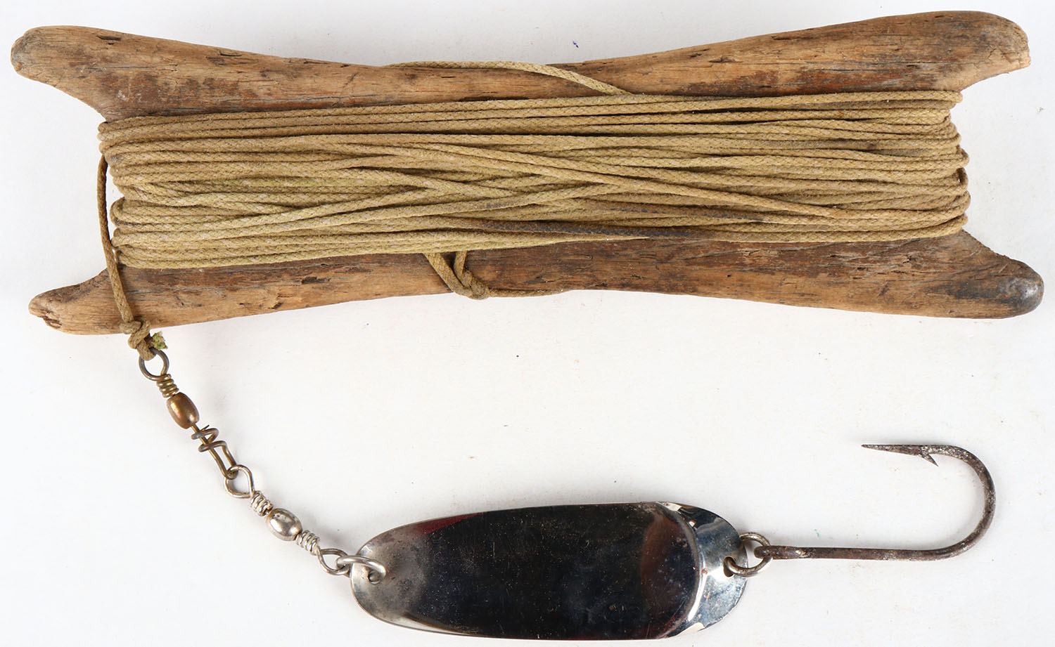 | Hand made wood line holder with Andyreekers spoon, 6 1/2. Grade...