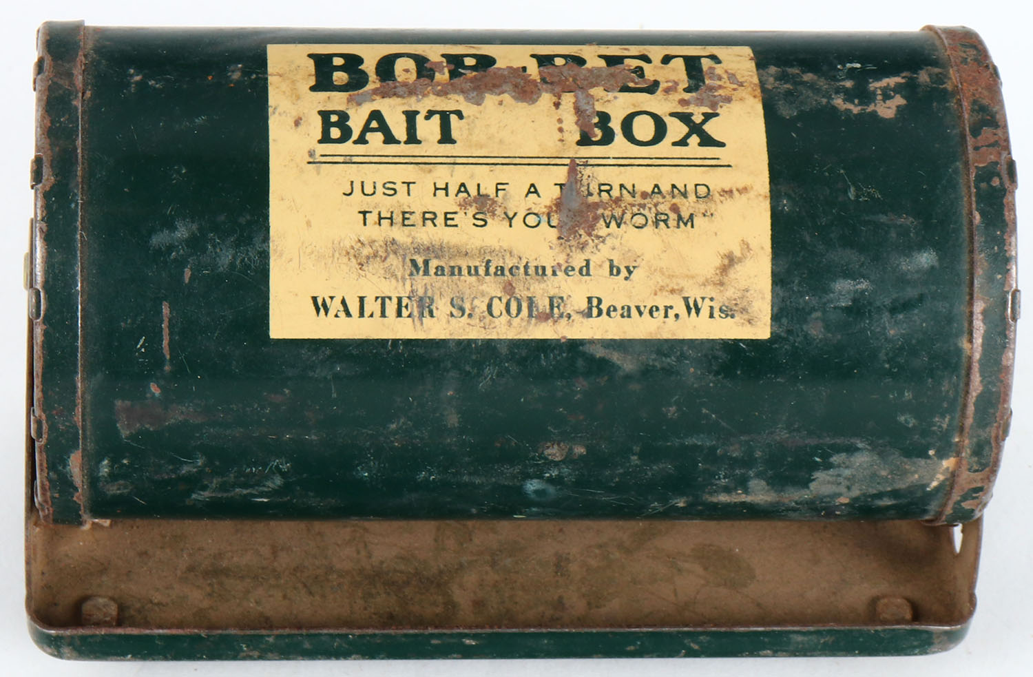 Walter S. Cole BOB BET BAIT BOX, has belt loops, shows wear. Grade: Very Good - Value: 2 to 30