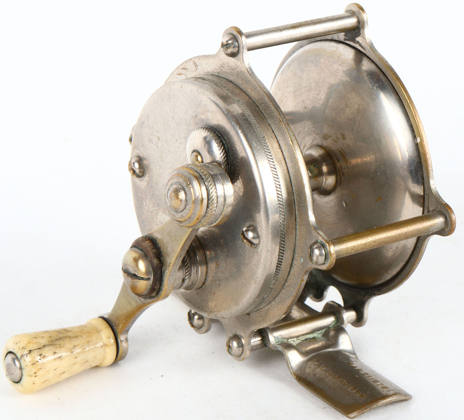 Hendryx reel, 80yd, single bone handle, well marked on reel seat, handle is a slightly bent. Grade: Very Good ++ - Value: 6 to 30