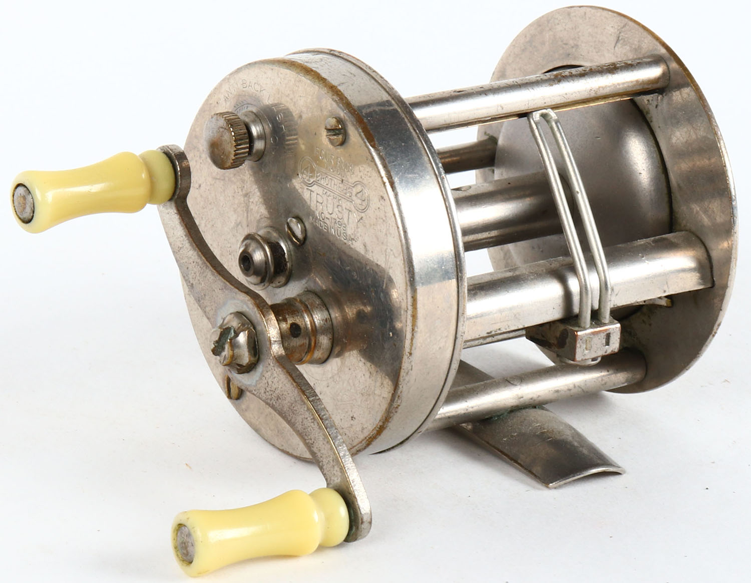 | 4 Brothers Trusty No. 1793 level wind reel, dual handle. Grade:...