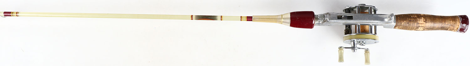 Paul Bunyan Model 66 level wind reel, reel has engraved image of Paul Bunyan smoking a pipe, St. Croix fiberglass rod, 5' 6''. Grade: Excellent - Value: 10 to 60