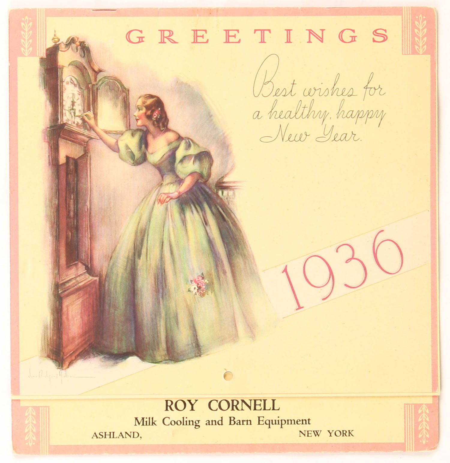 1936 calendar pictures many old images of days gone by, 8'' x 16''. Grade: Excellent ++ - Value: 10 to 50