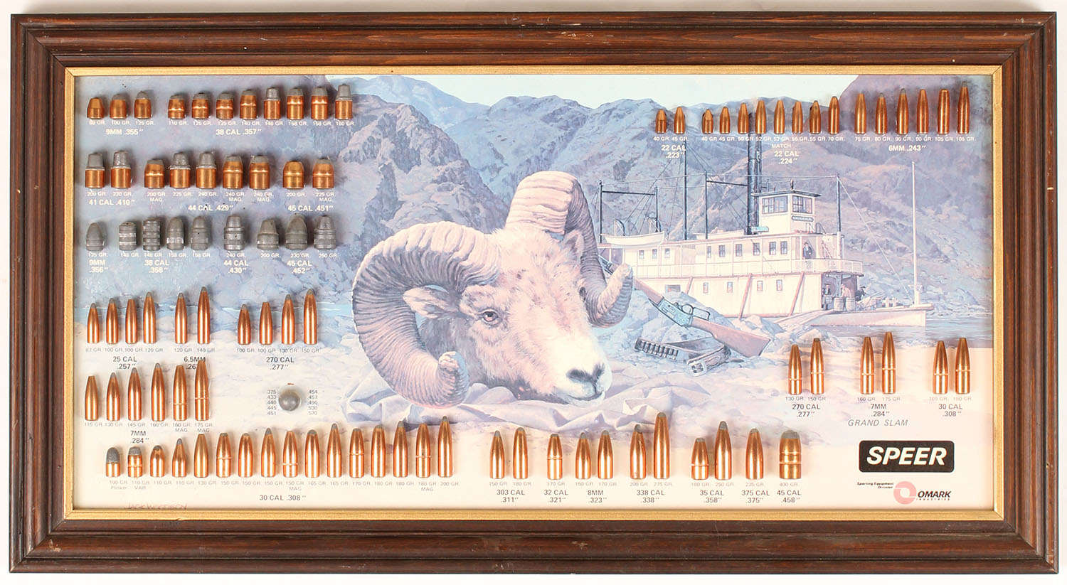 Speer Bullet Board, pictures Hells Caynon Ram & Imnaha Sternwheeler, all of which is on the Oregon - Idaho boarder, all bullets intact. Grade: Excellent + - Value: 100 to 300