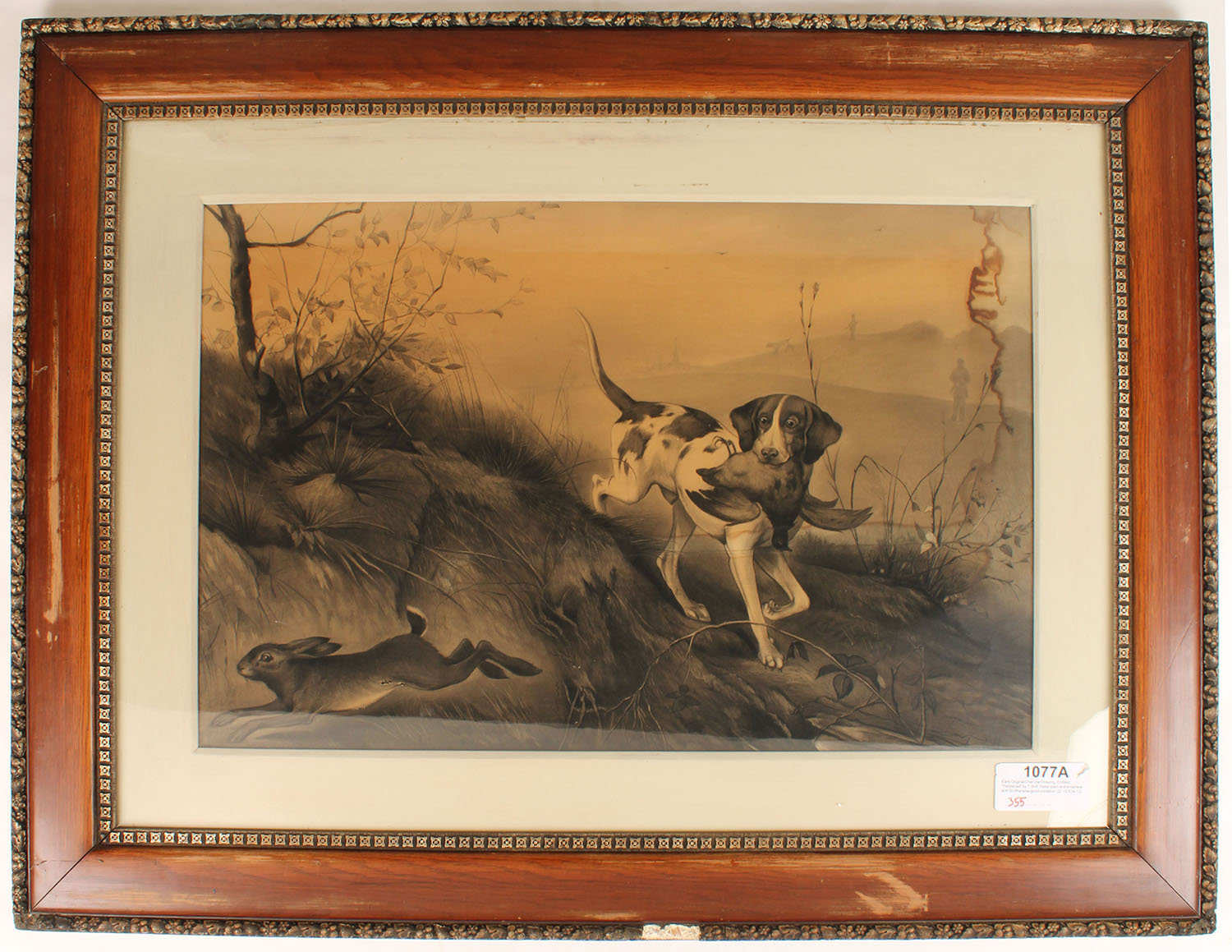Early Original Charcoal Drawing, Entitled ''Perplexed'' by T. Brill, water stain and small tear at 4:00 otherwise very nice condition, 22 1/2'' x 34 1/2'', framed, this will cost about 400.00 to ship. Grade: Very Good ++ - Value: 200 to 2000