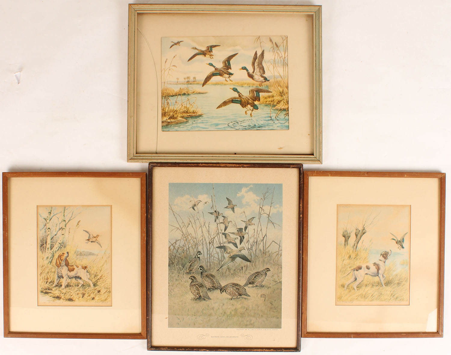 Lot of 4 framed prints of hunting images. Grade: Excellent - Value: 20 to 200